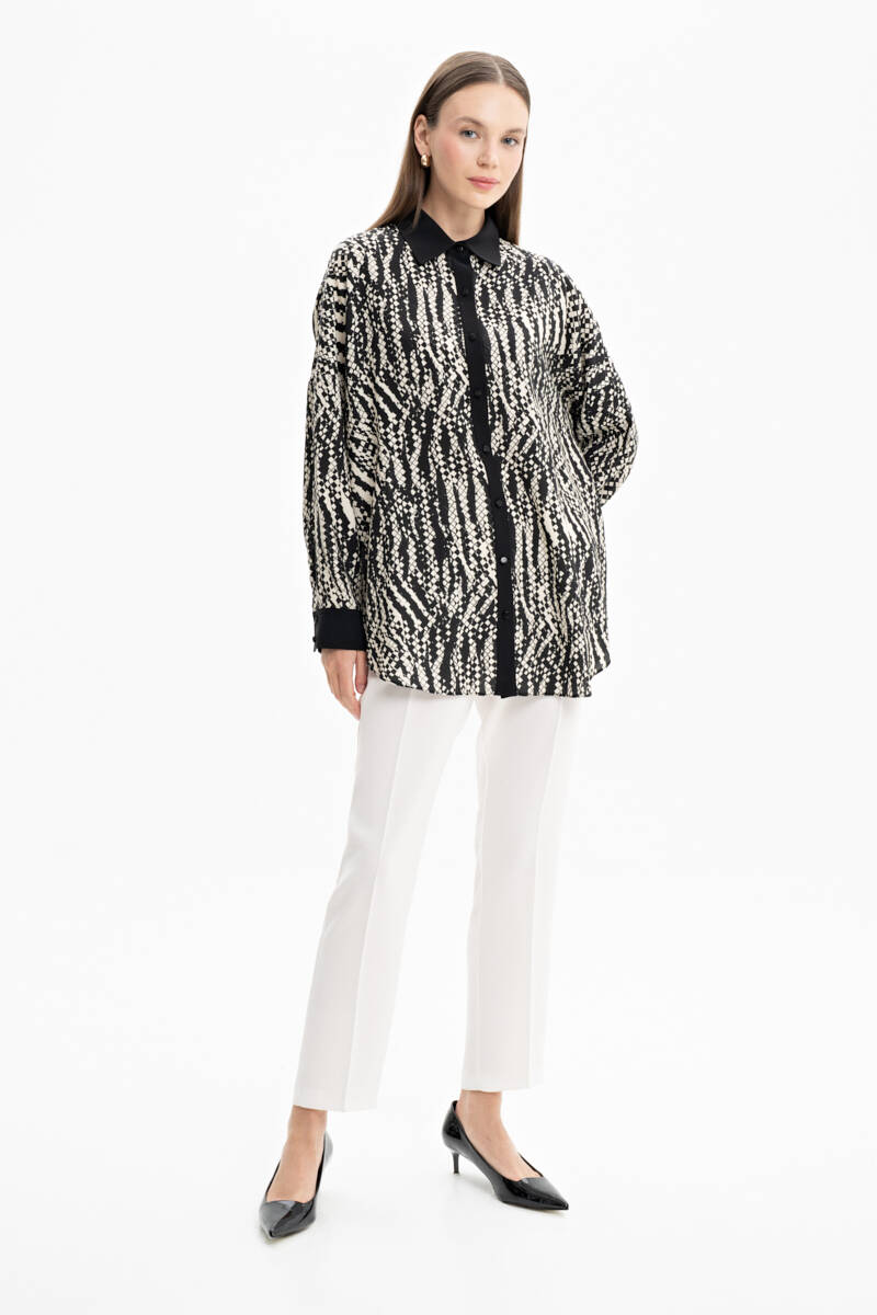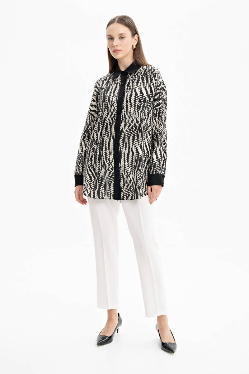 Antrasit Yaka İşlemeli Çizgili Bluz
