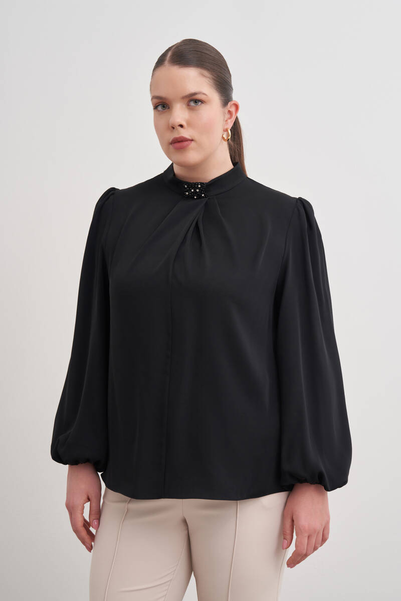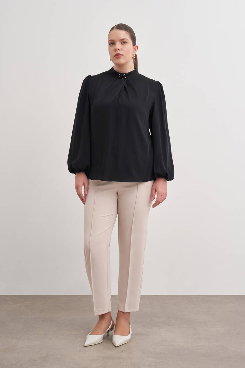Pembe Yakası Pili ve İşleme Detaylı Dokuma Bluz