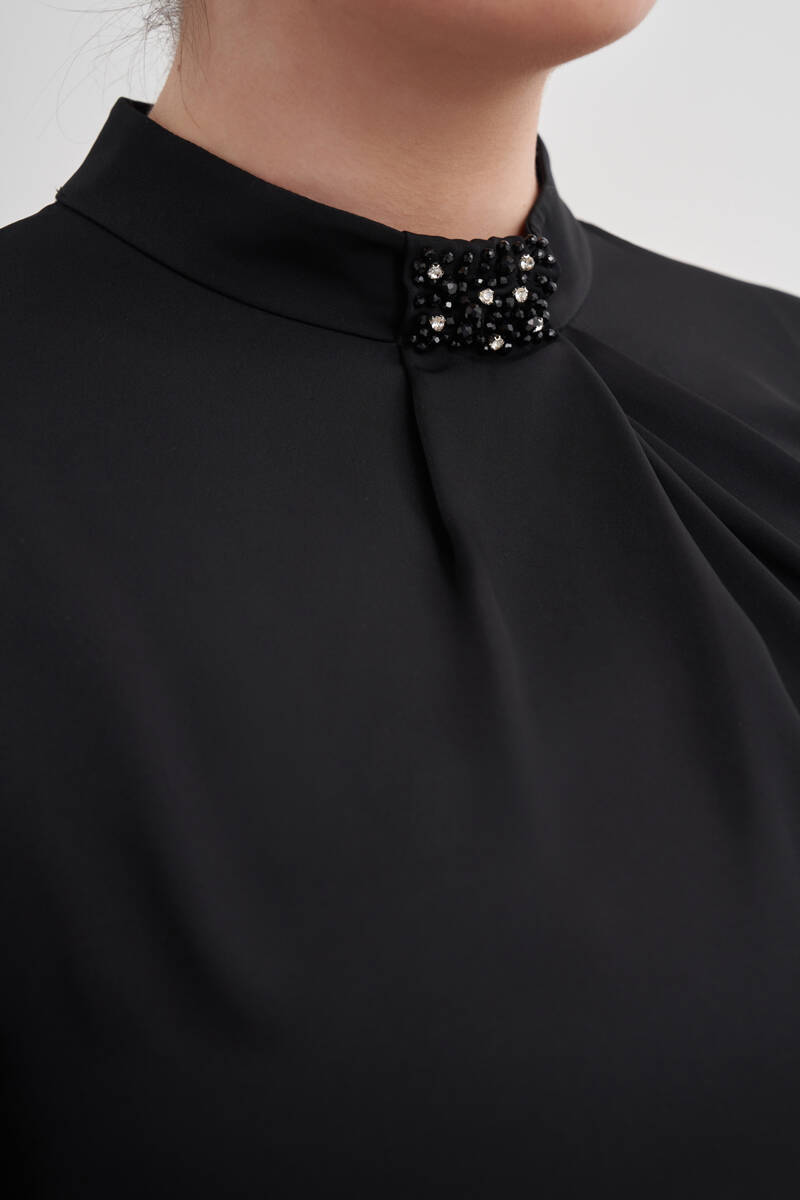 Taş Bisiklet Yaka Kolsuz Keten Bluz