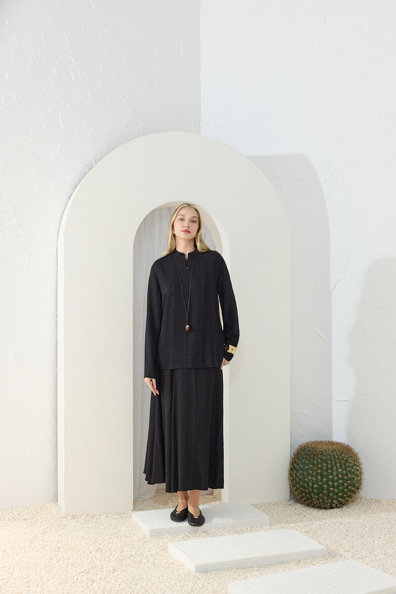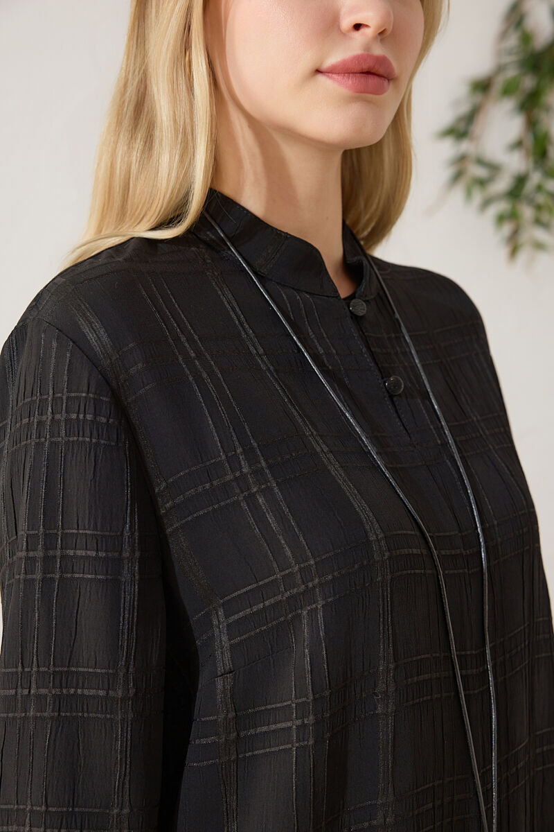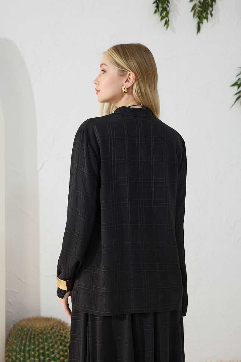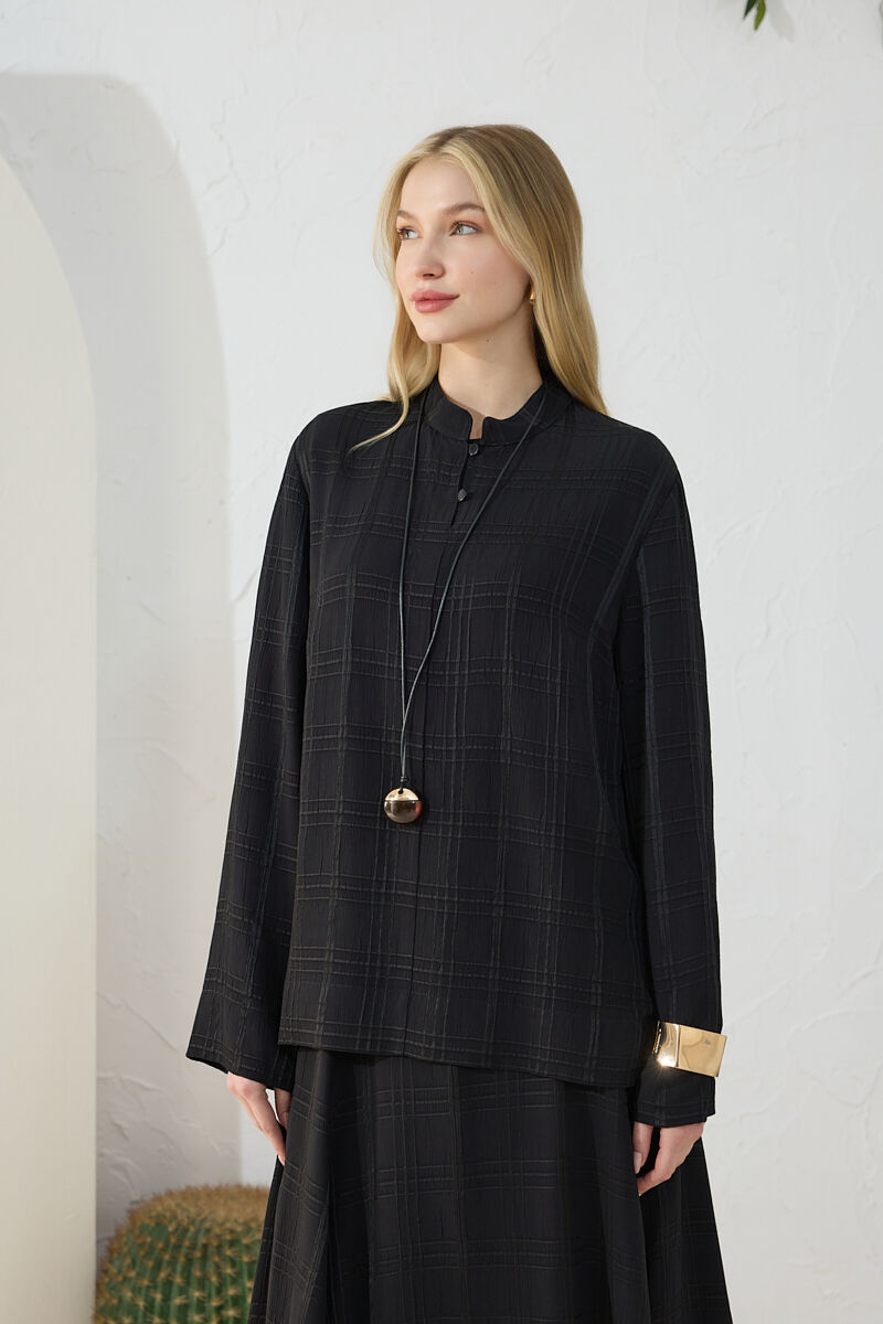 Siyah Dik Yaka Brit Detaylı Bluz
