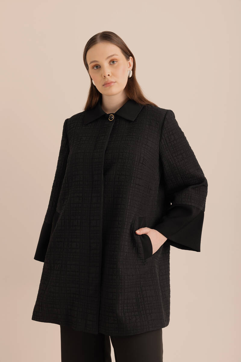 Siyah Çizgi Dokulu Tencel Rayon Kumaş Kap