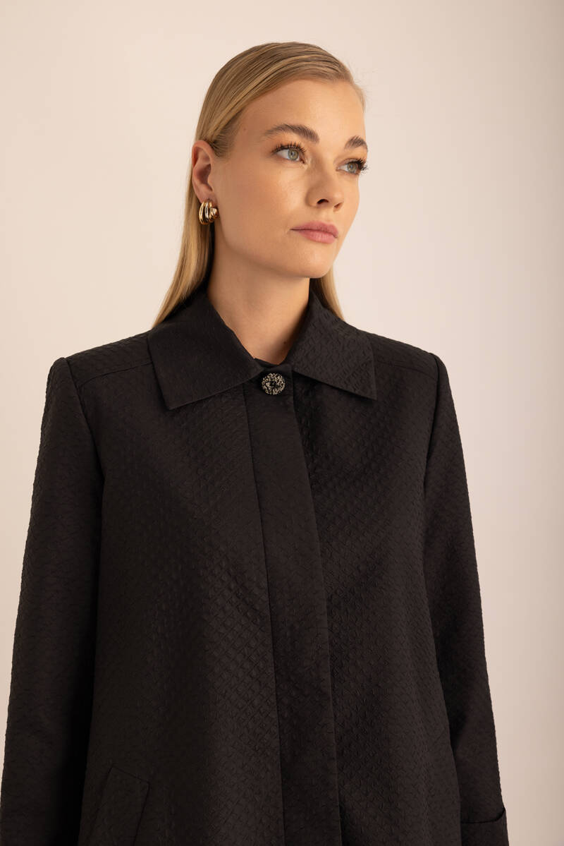 Siyah Geometrik Desenli Cotton Yaz Serinliği Kimono