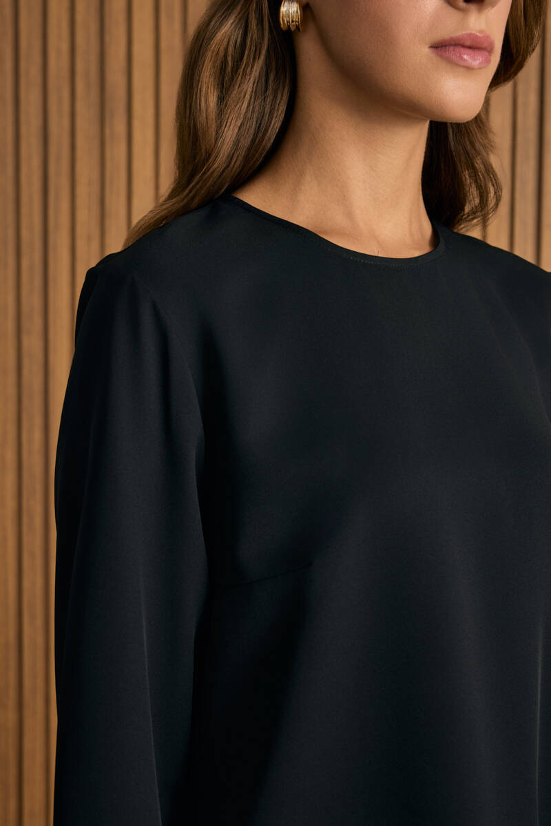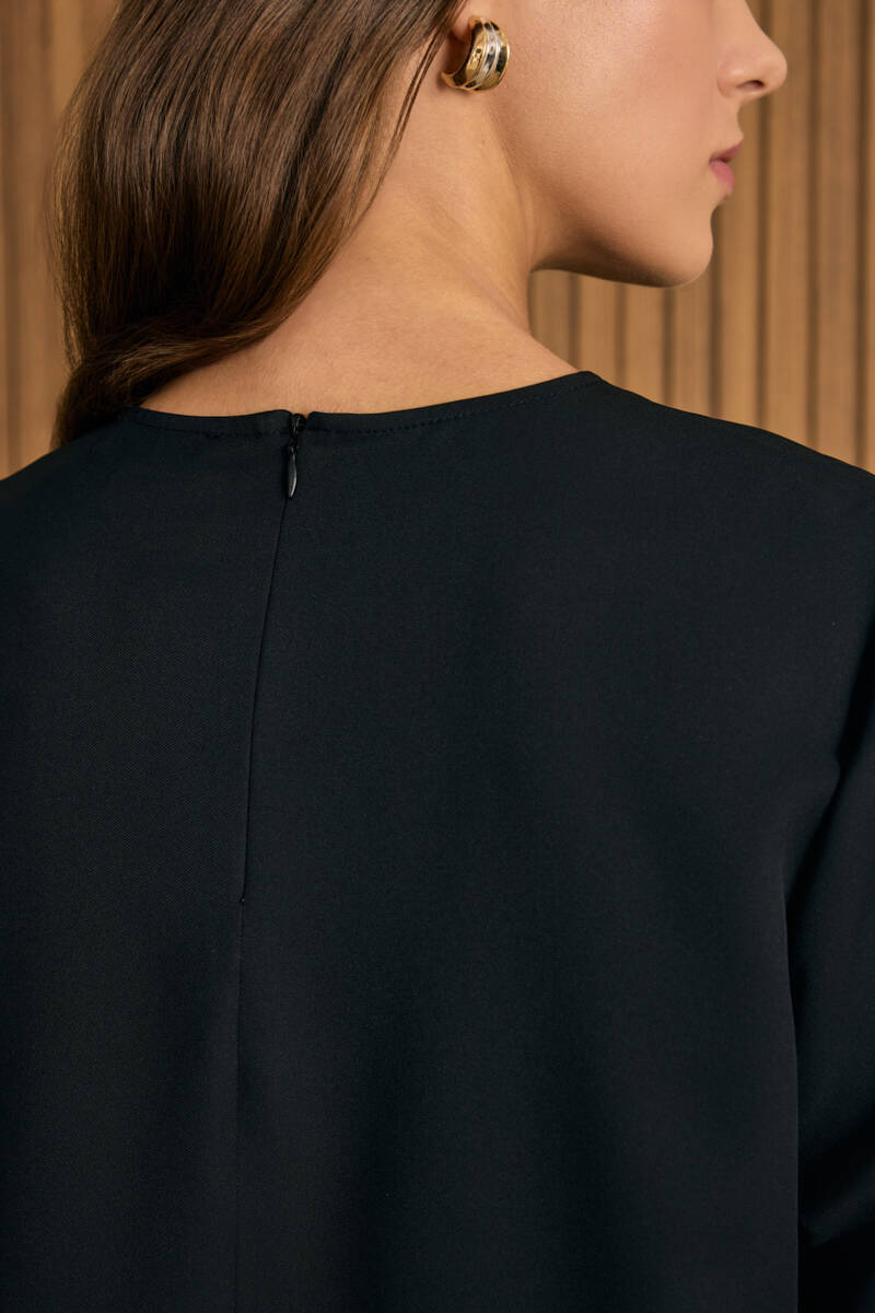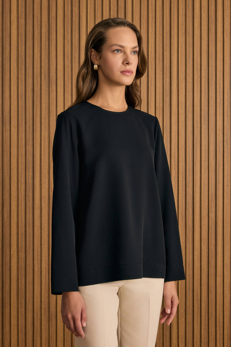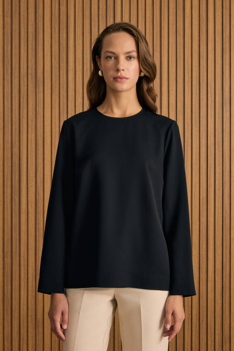 Siyah Rahat Form Keten Bluz