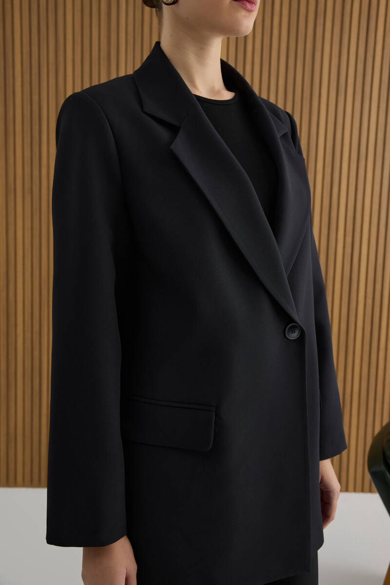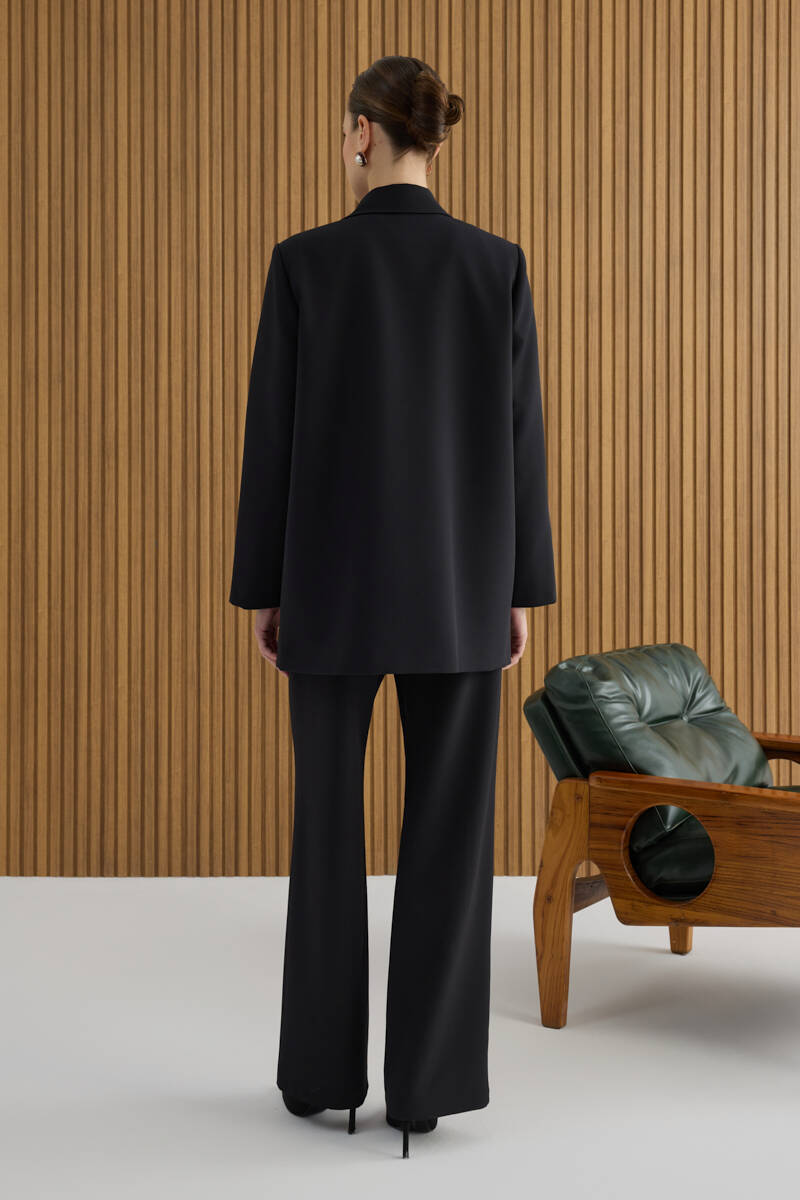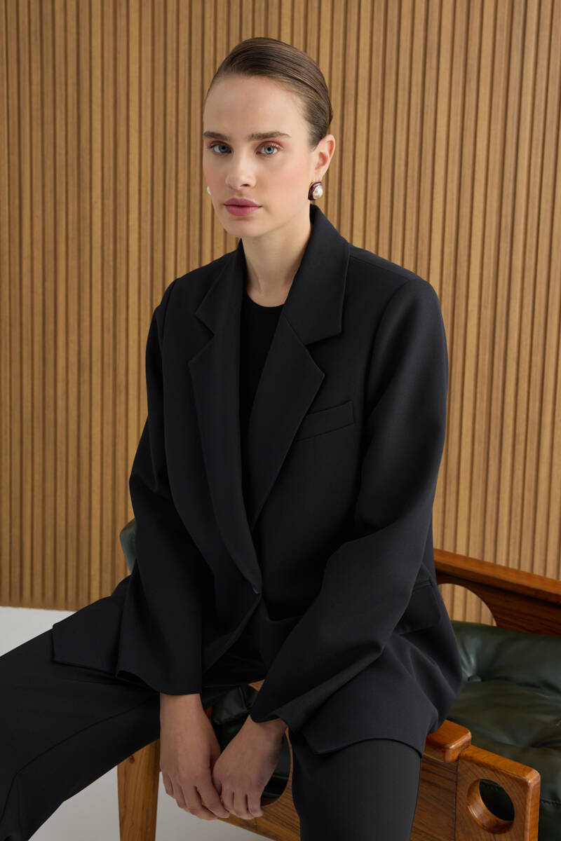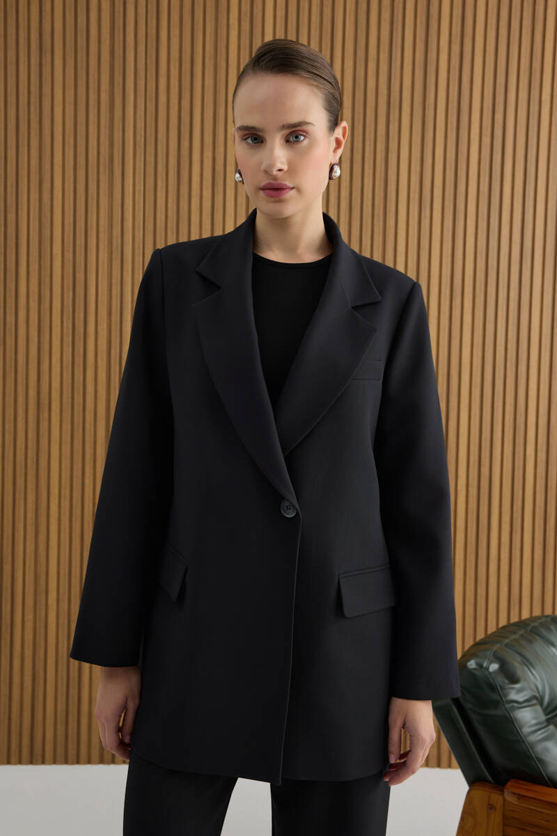 Siyah Taş Yapıştırmalı Dokuma Klasik Ceket