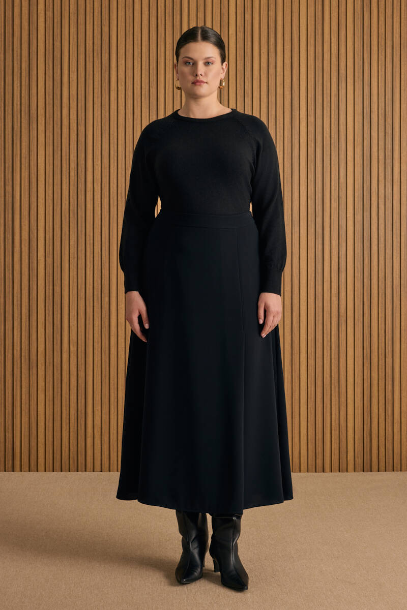 Siyah Örme Uzun Etek