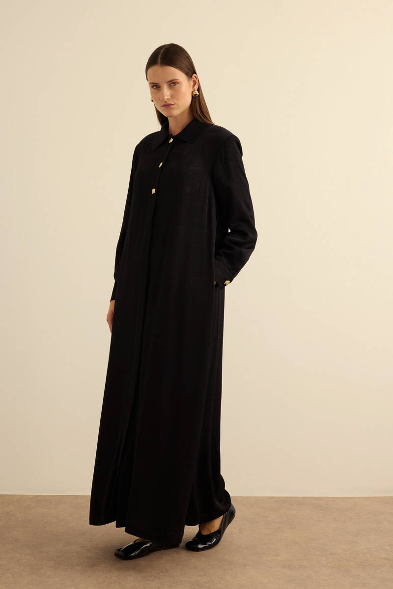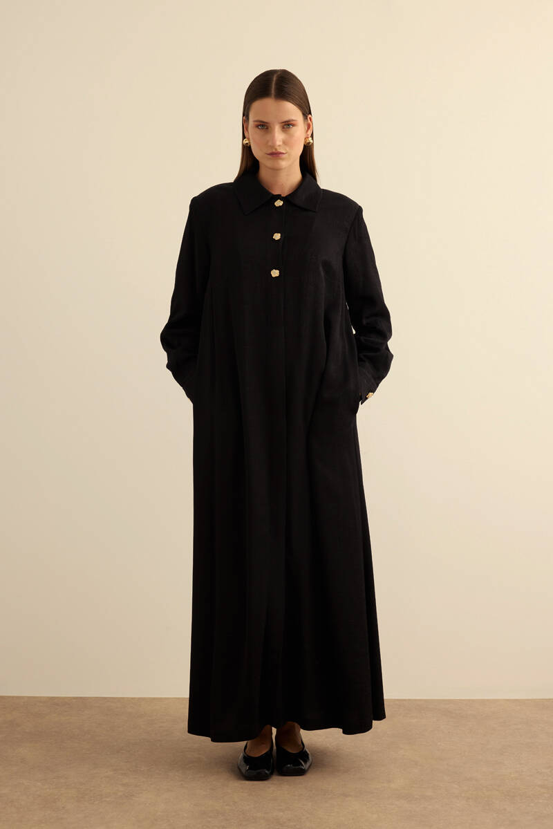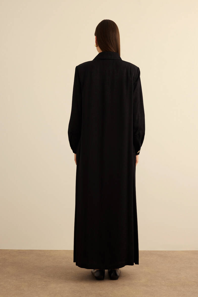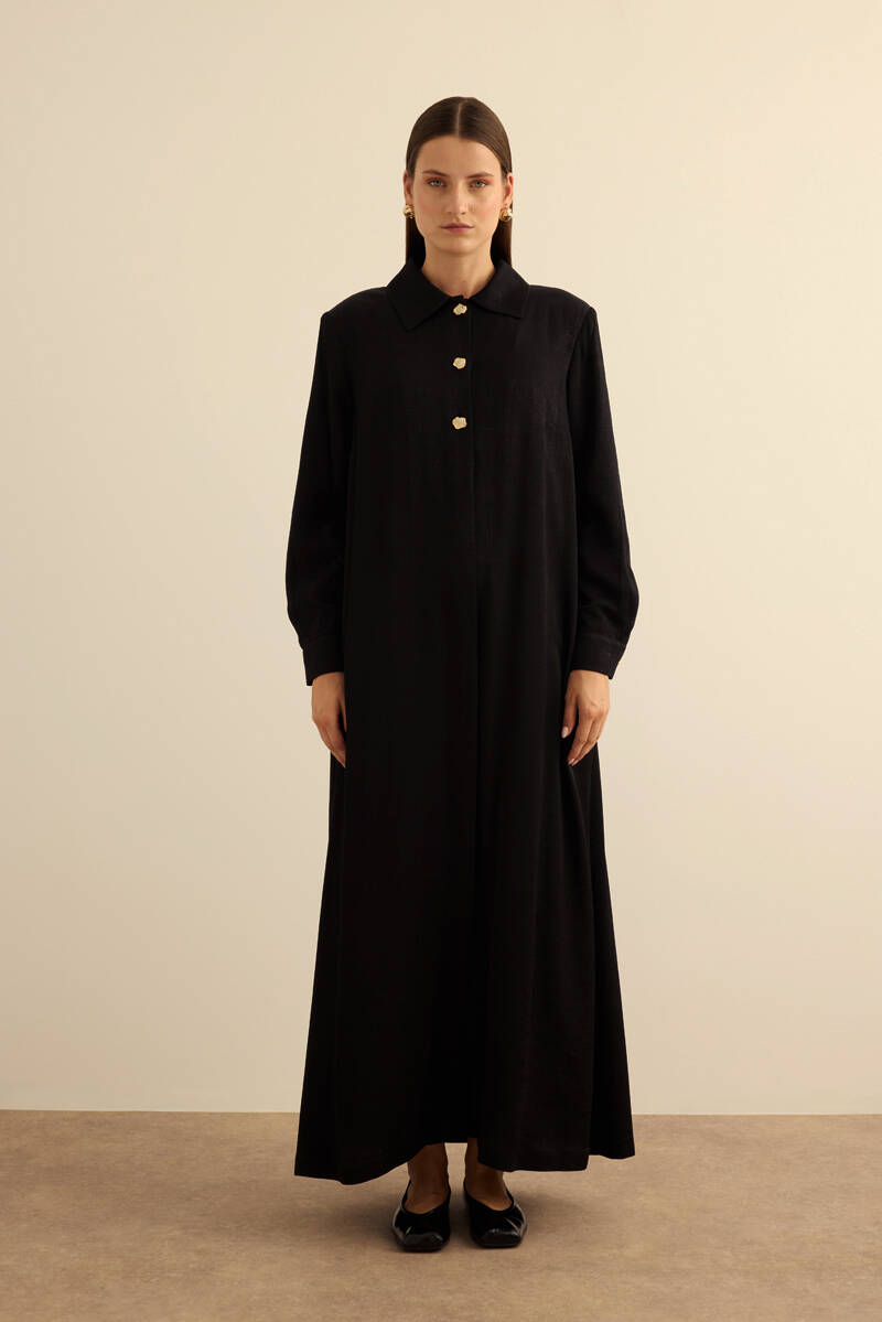 Siyah Doğal Dokulu Kumaş Gömlek Elbise