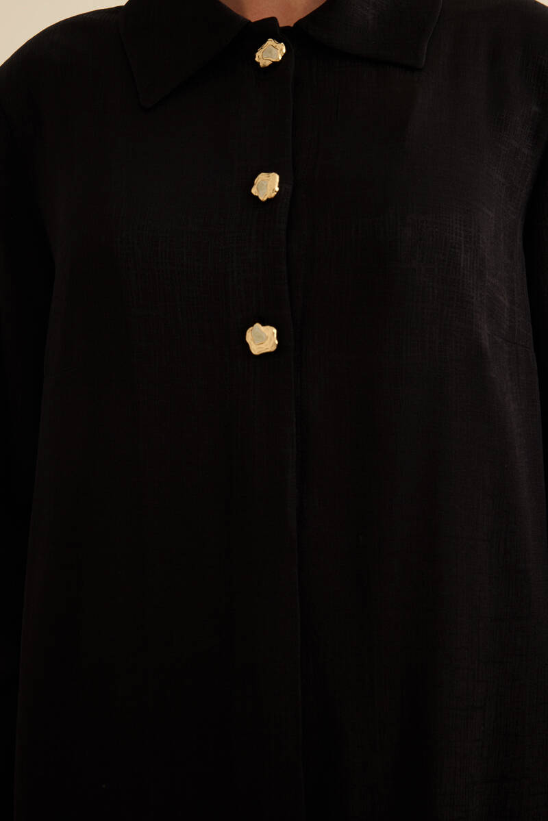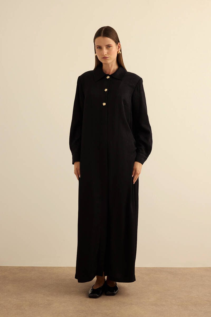Siyah Cepleri Nakışlı Dokuma Ferace