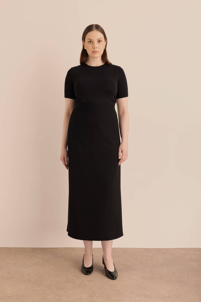Siyah Örme Uzun Etek