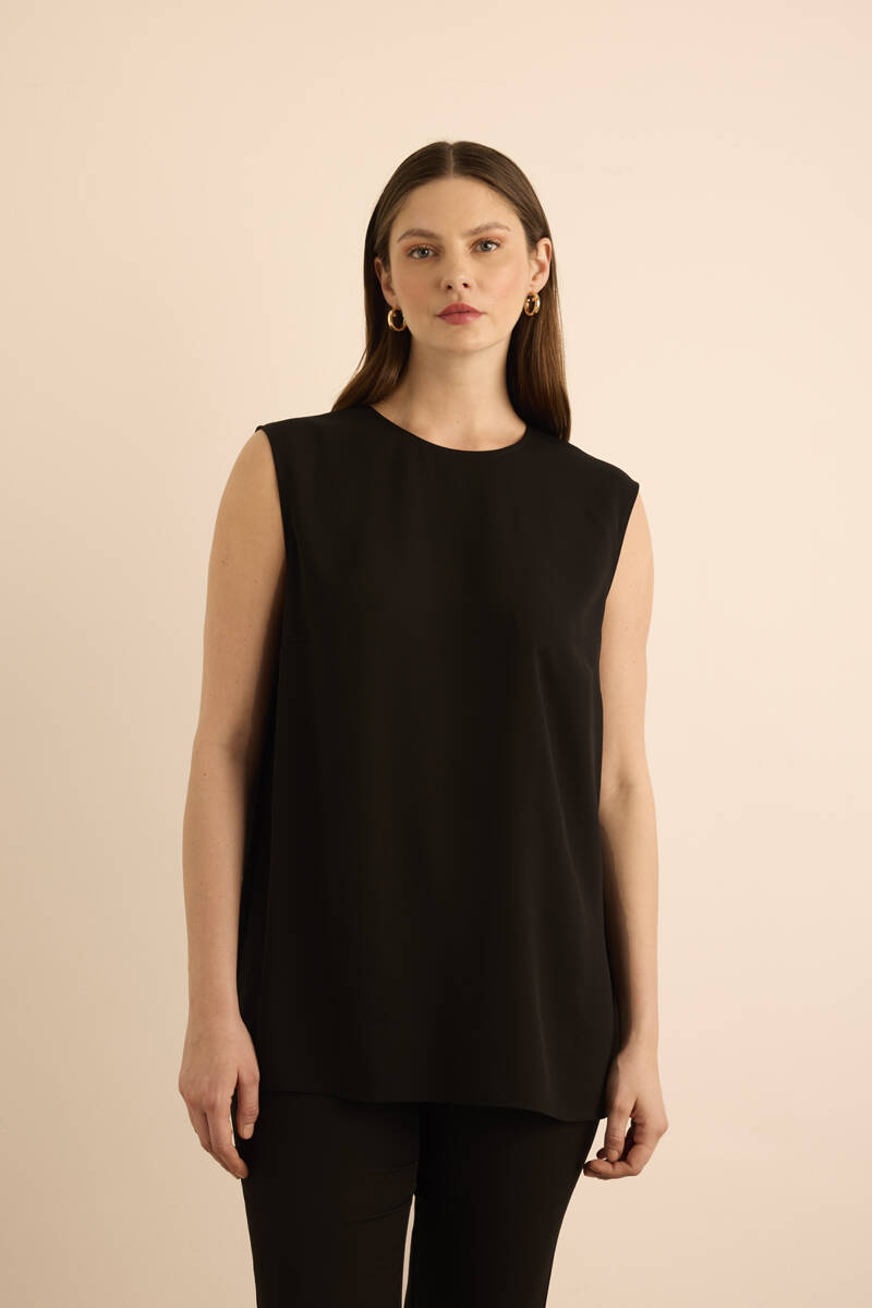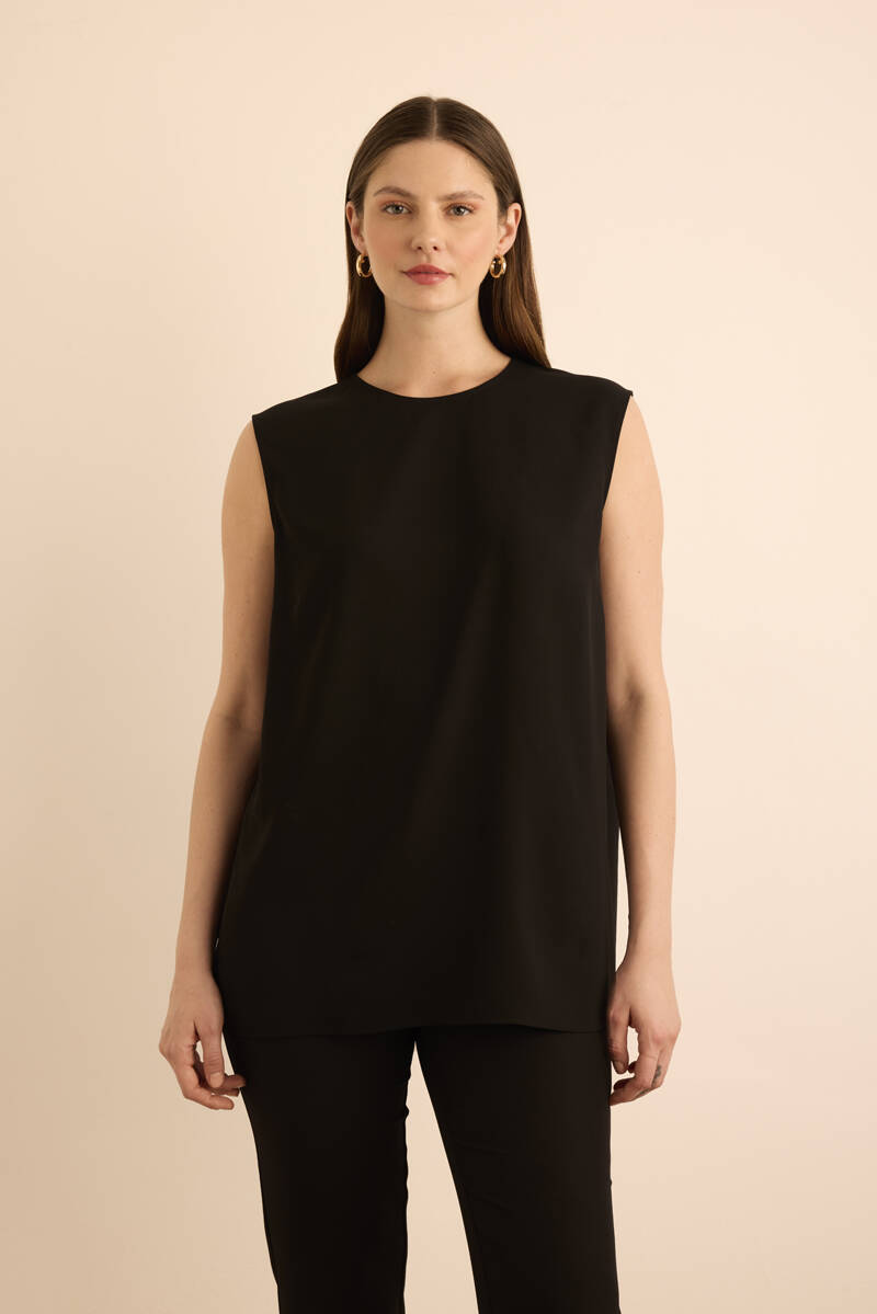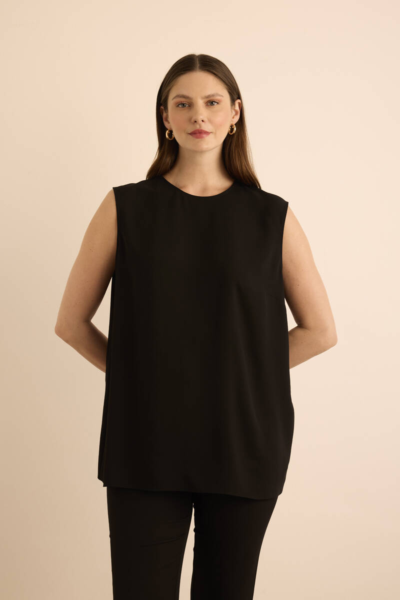 Taş Bisiklet Yaka Kolsuz Keten Bluz