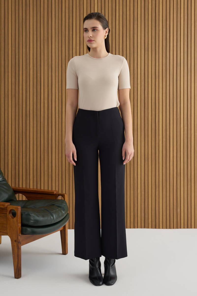 Siyah İspanyol Paça Dokuma Pantolon