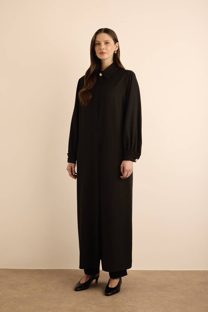 Siyah Özel Dokuma Kumaştan Viscon İçerikli Pardösü