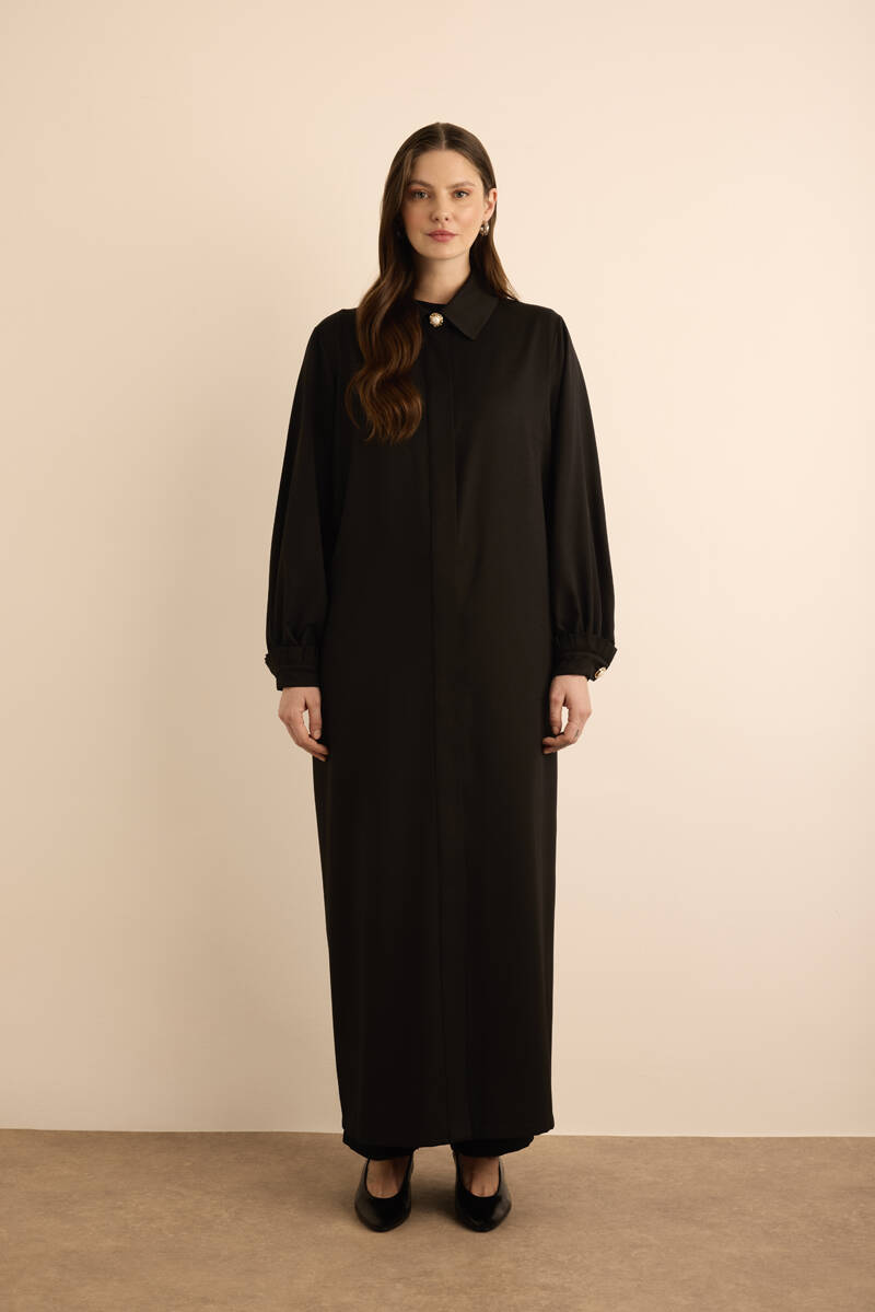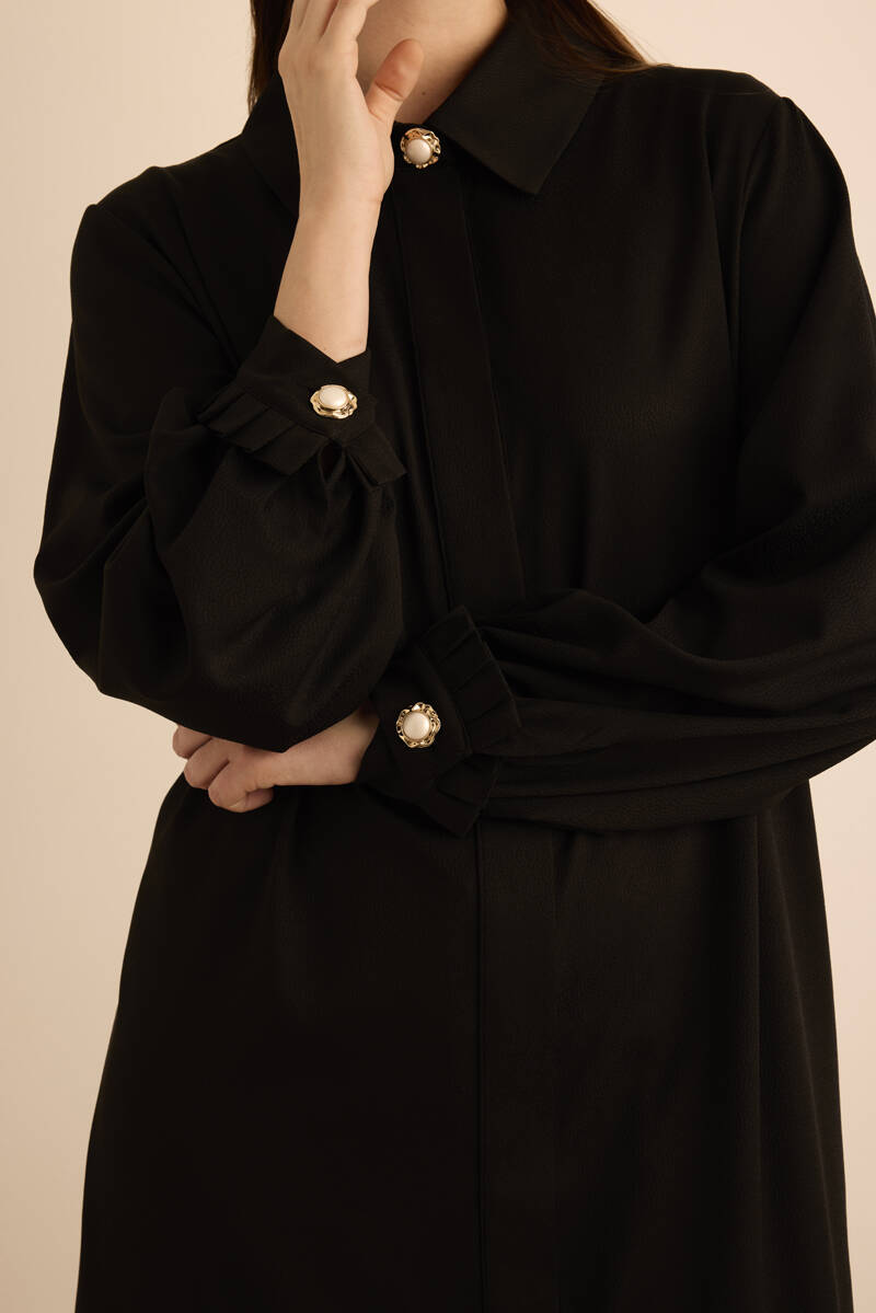 Siyah Kolları İşleme Detaylı Pardösü
