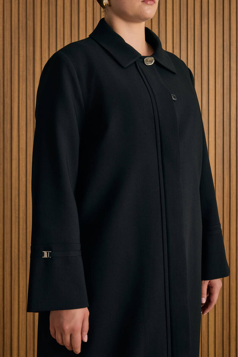 Siyah Kolları Detaylı Fermuarlı Pardösü