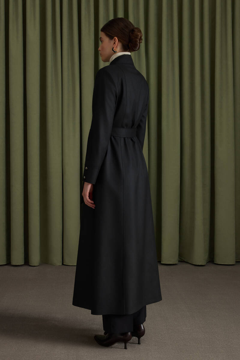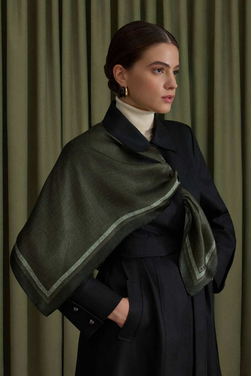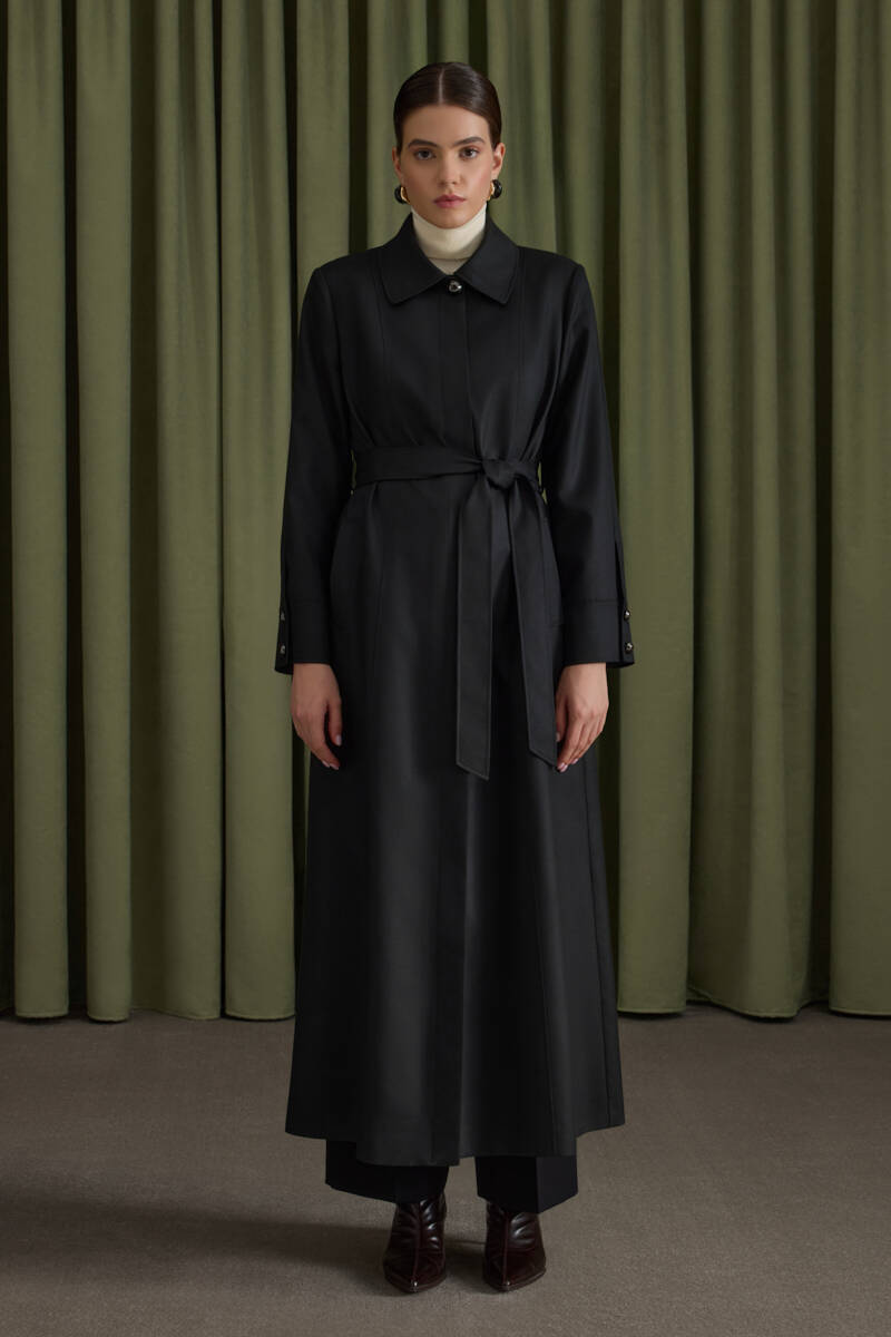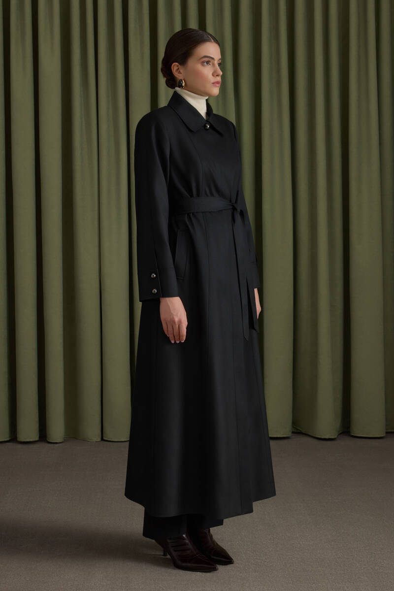 Lila Kumaşı Çizgi Dokulu Viscon Pardösü