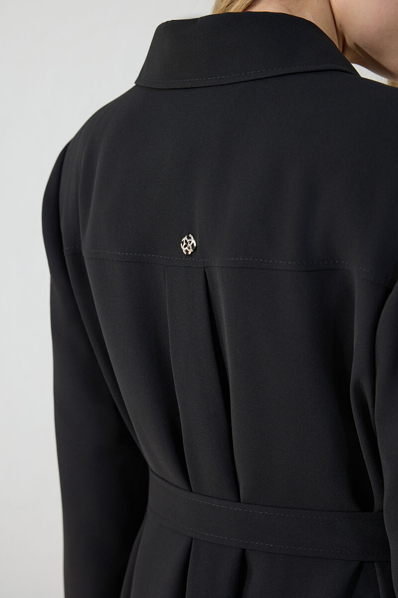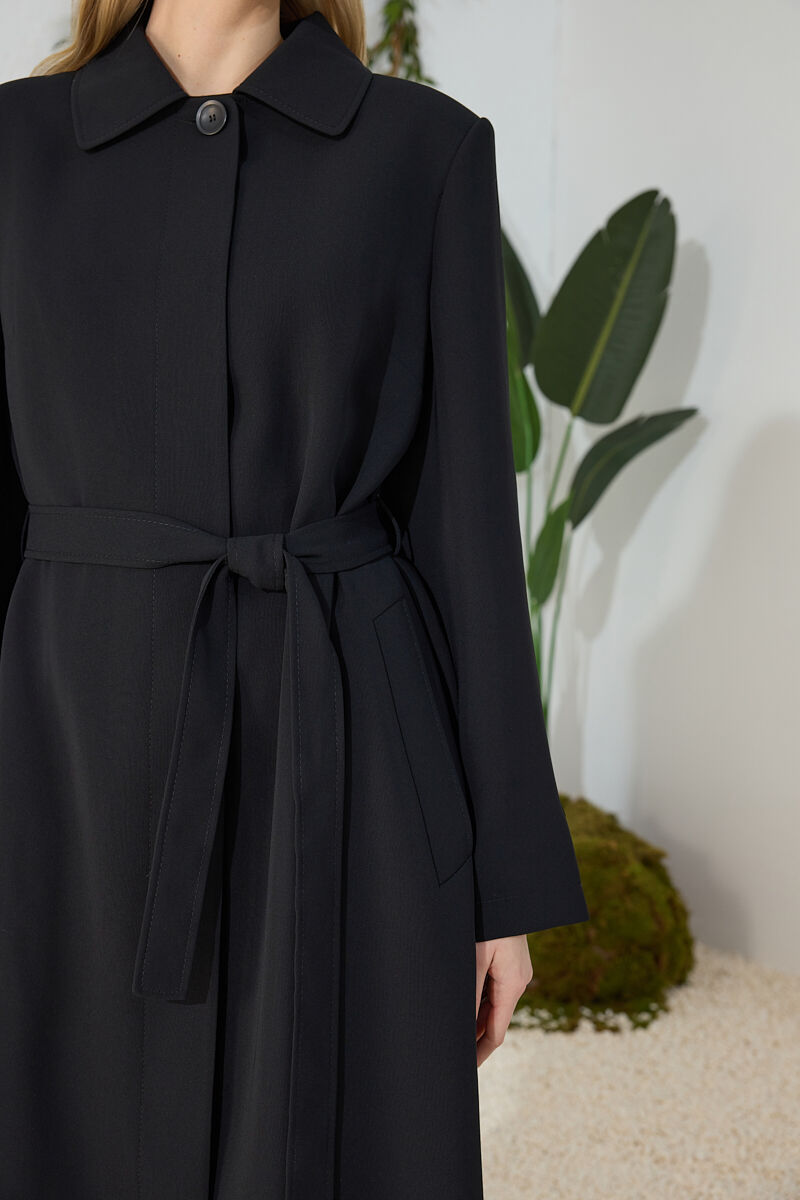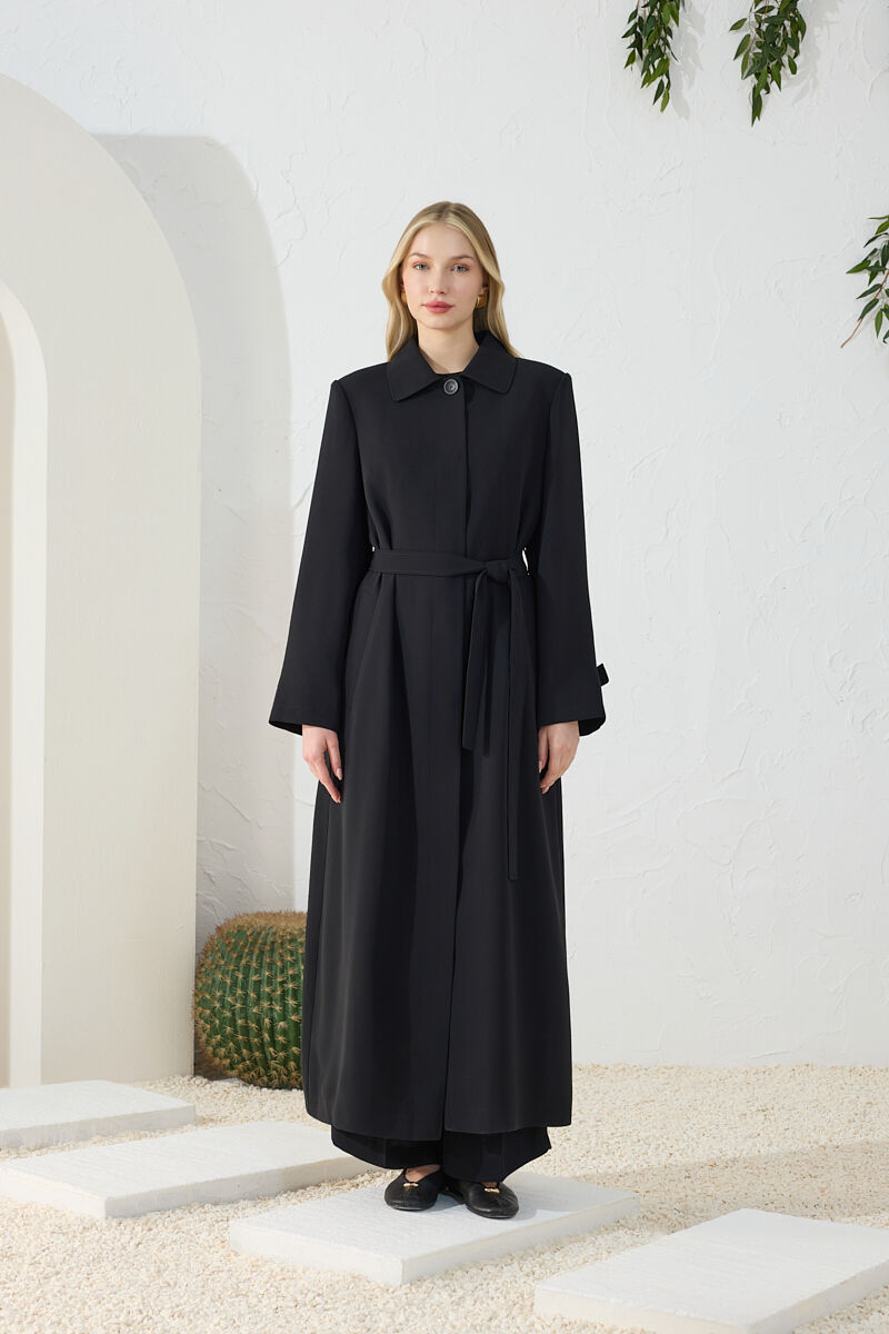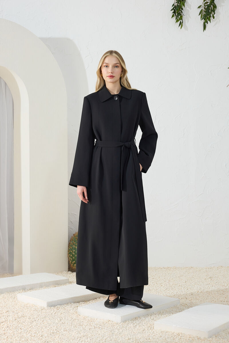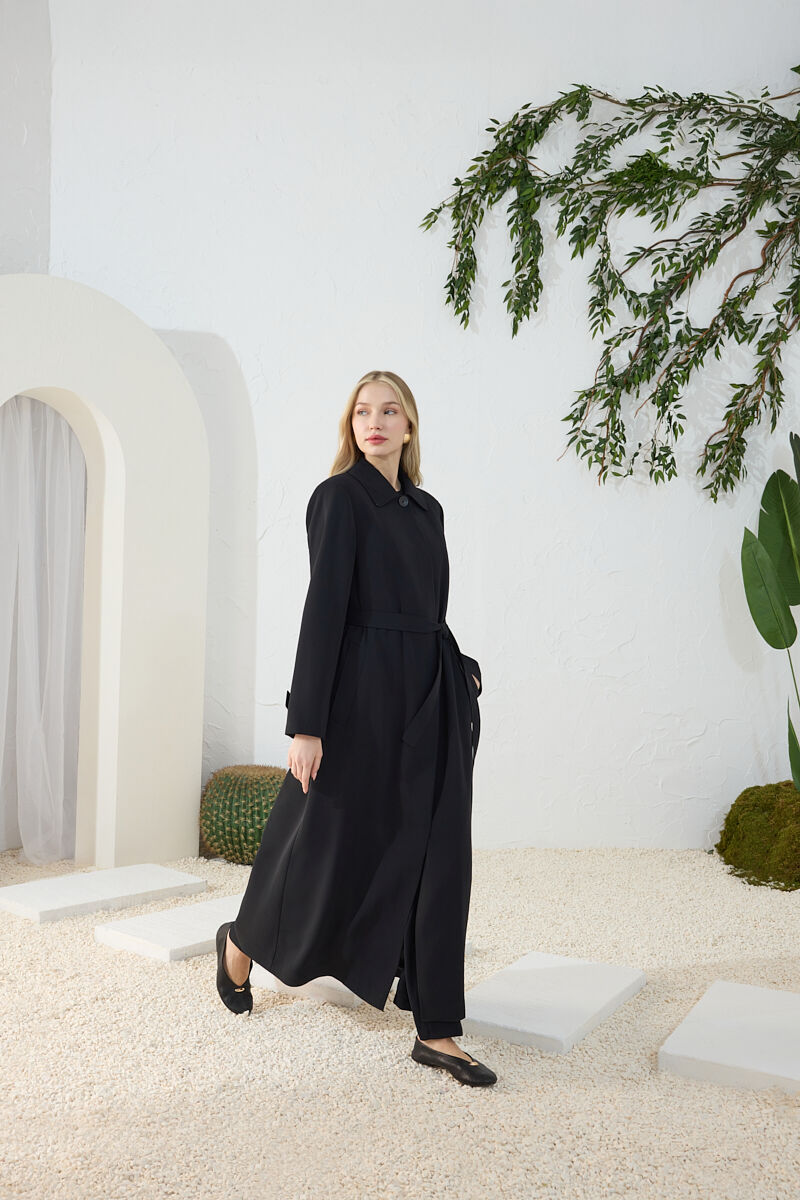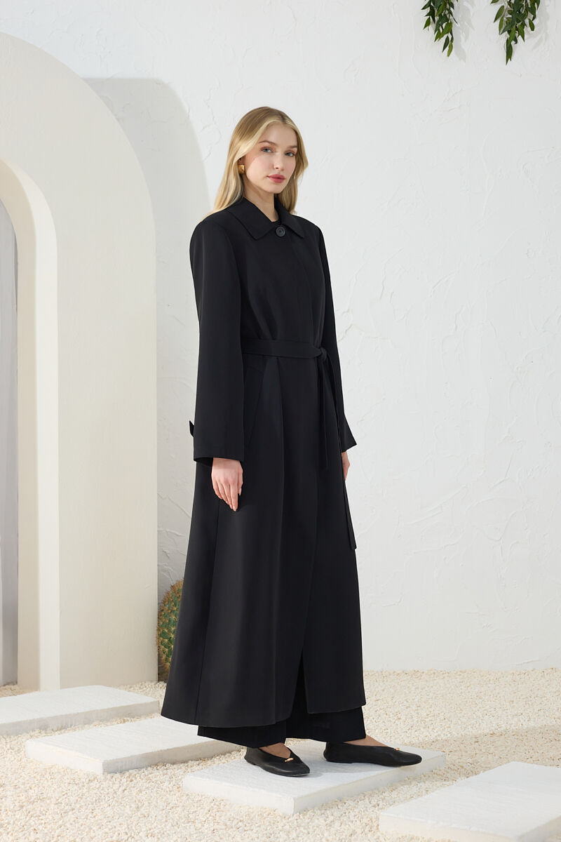 Siyah Kemer Detaylı Pardösü