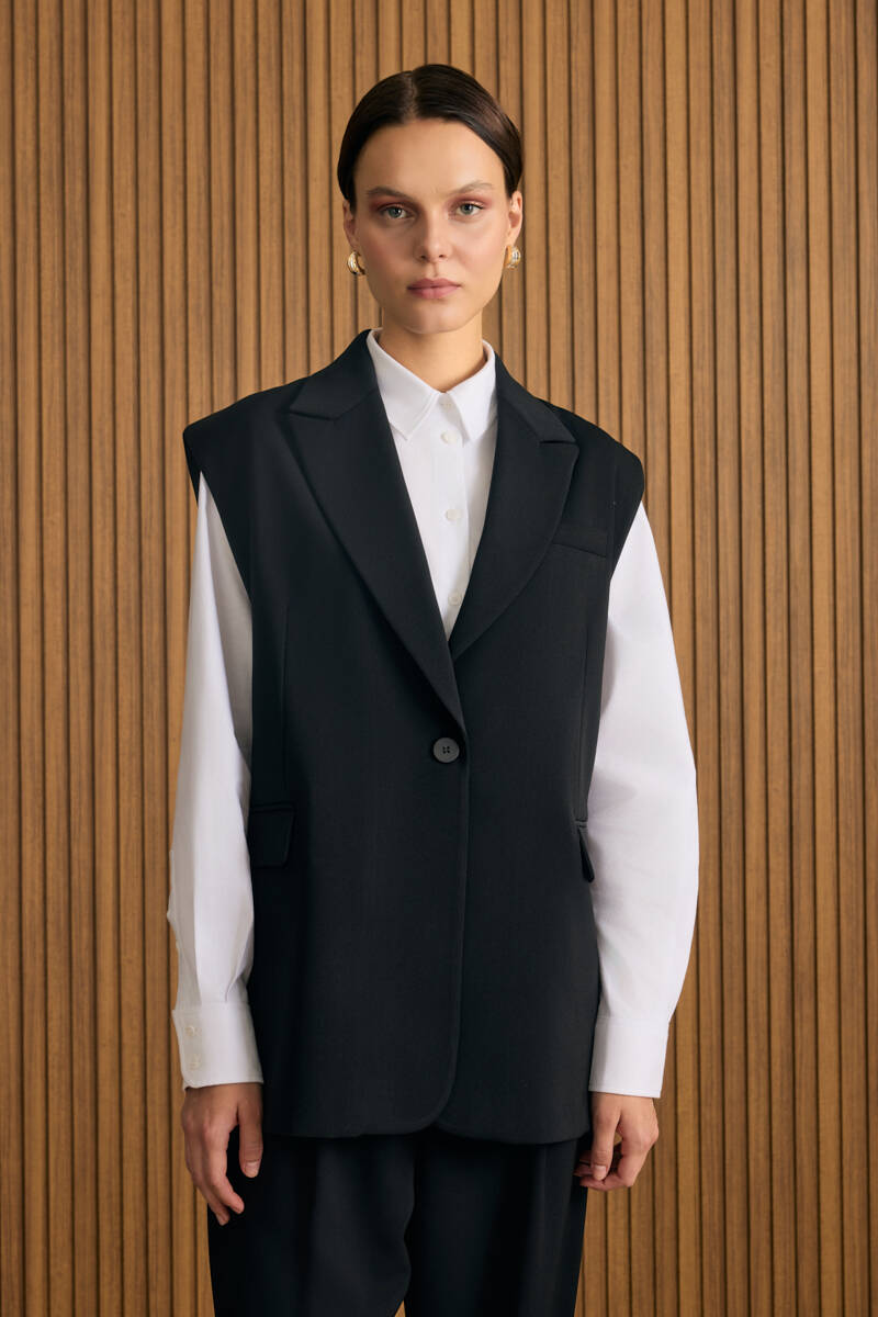 Siyah Önden Çıtçıtlı Dokuma Yelek