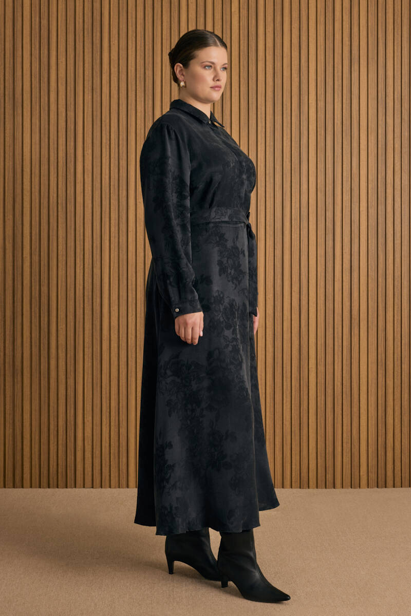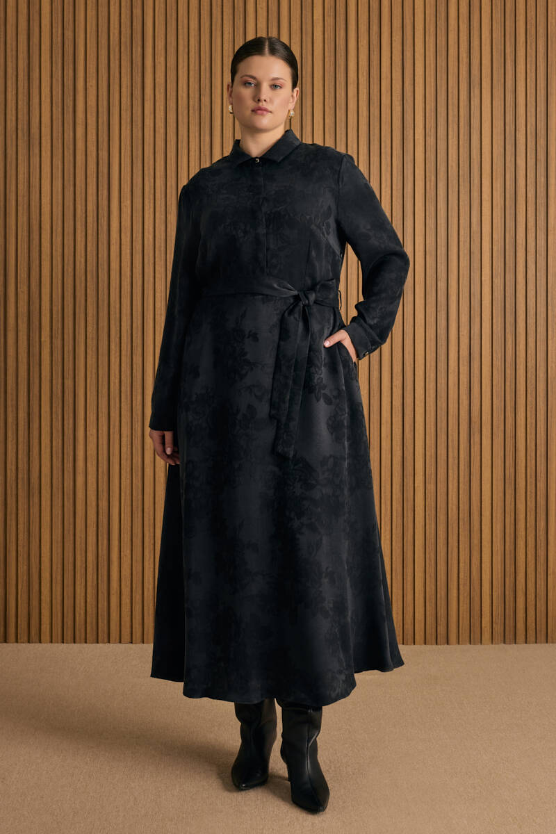 Lacivert Seyyar Çiçek Detaylı Varak Dokuma Elbise