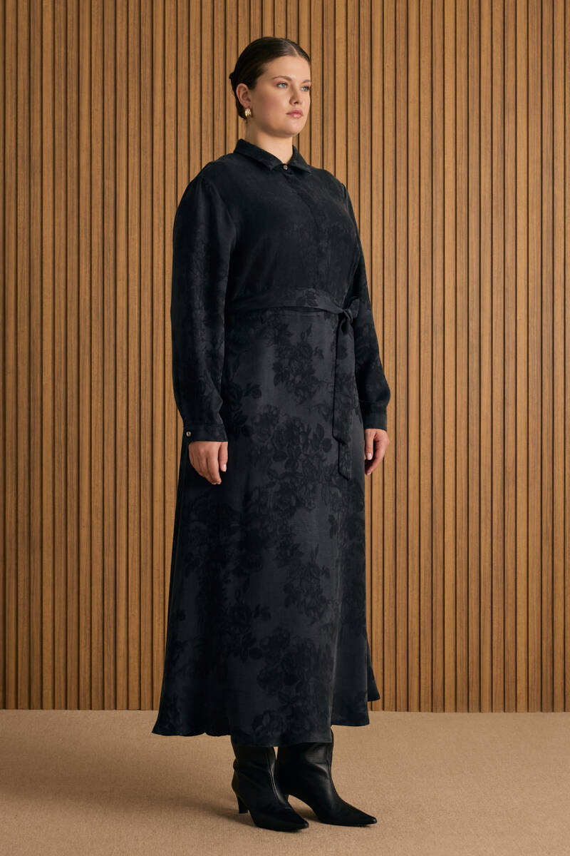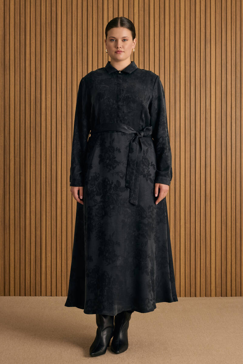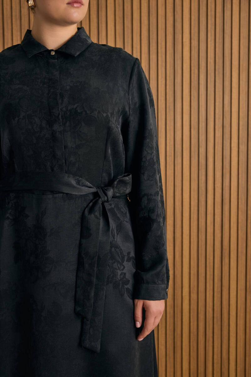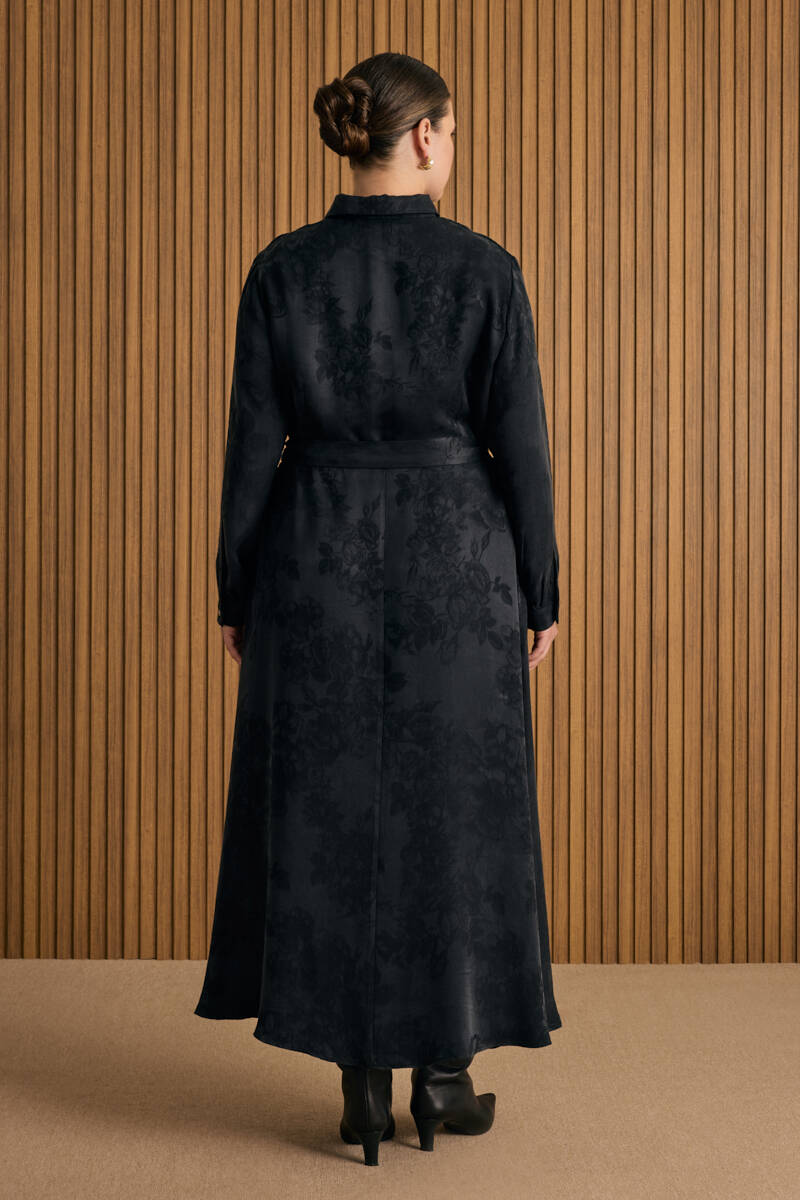 Siyah Vual Astarlı Cotton Brode Elbise