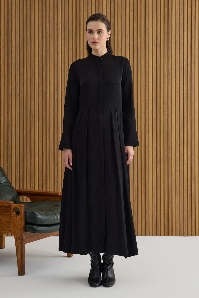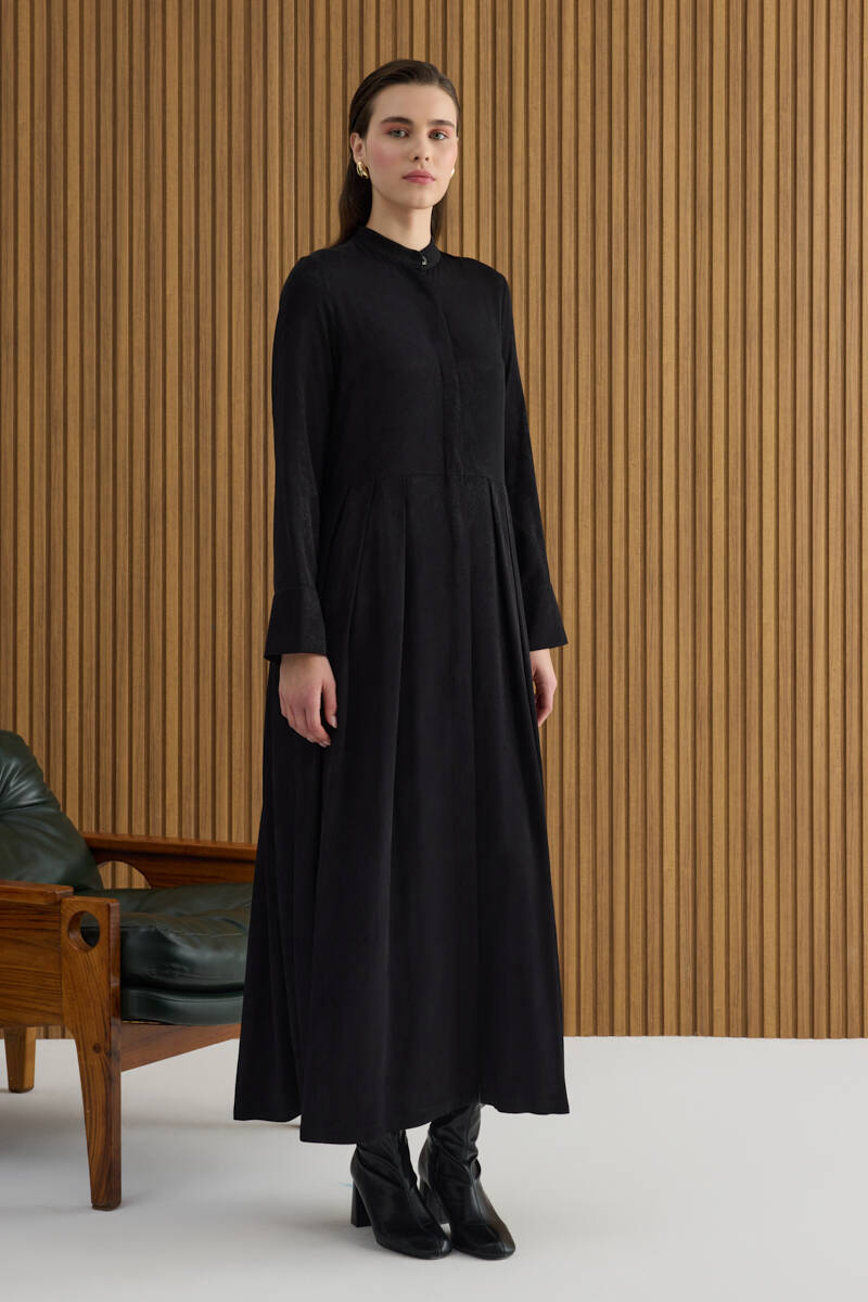 Siyah Dokusu Desenli Jakar Rayon Viscon Elbise