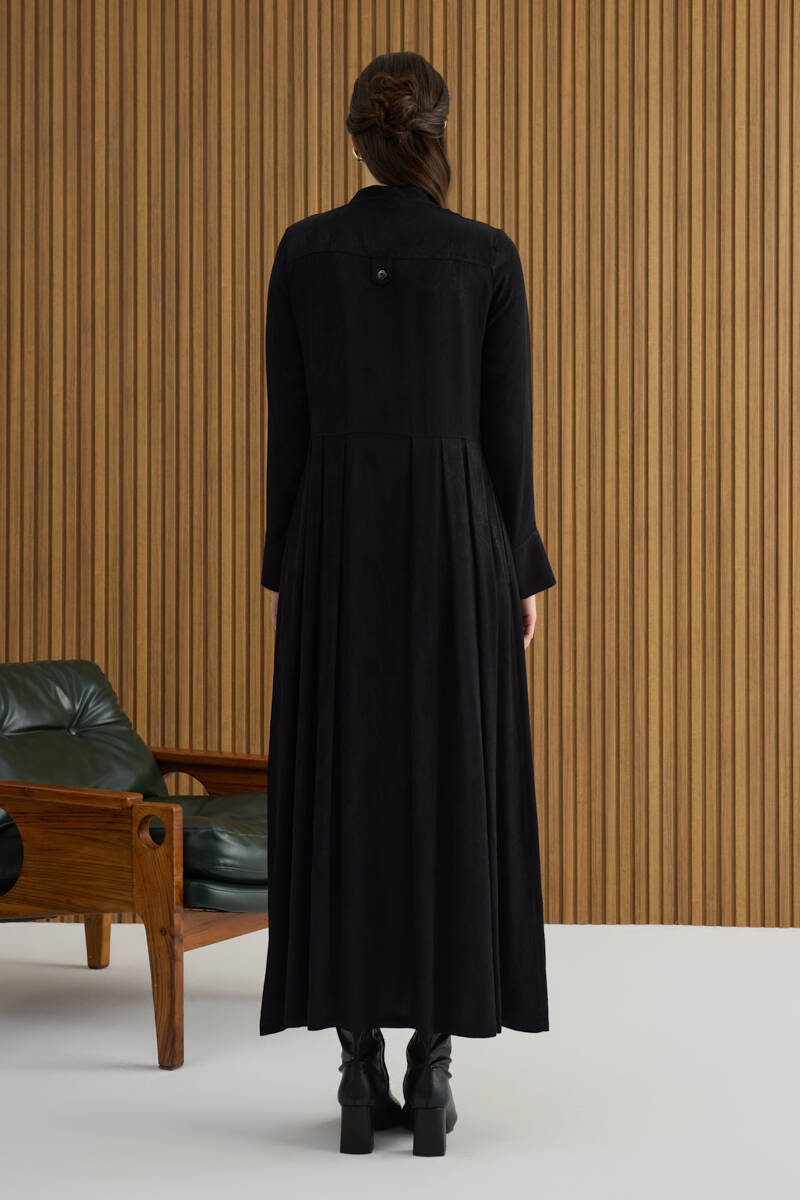 Siyah Doğal Dokulu Kumaş Gömlek Elbise