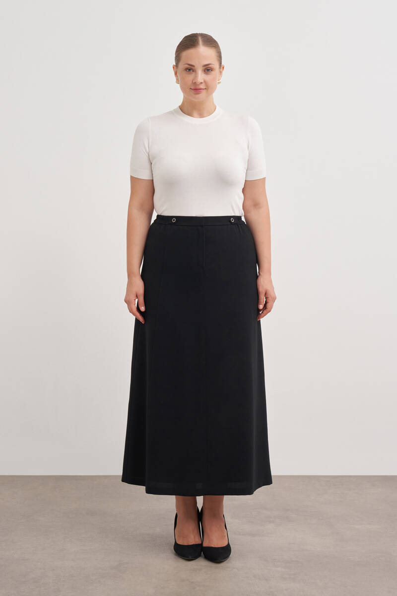 Siyah Beli Lastikli Robalı Dokuma Etek