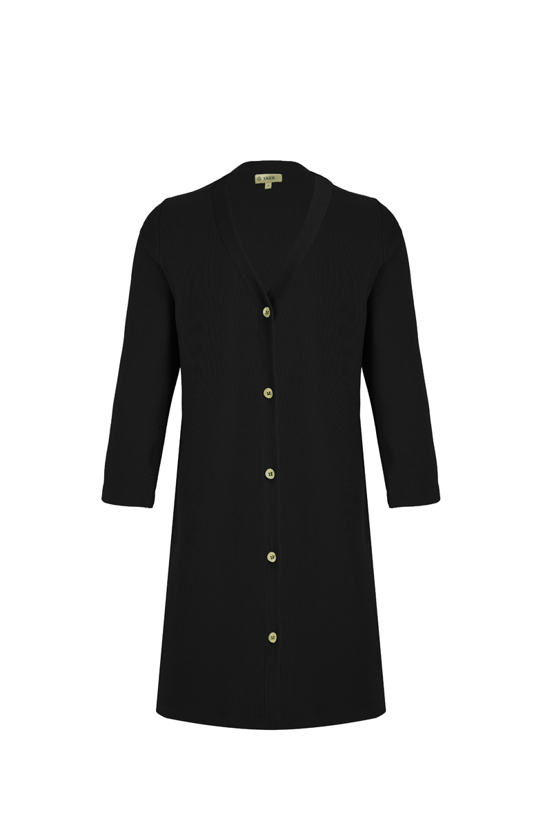Siyah Cepleri İşleme Detaylı Örme Uzun Hırka