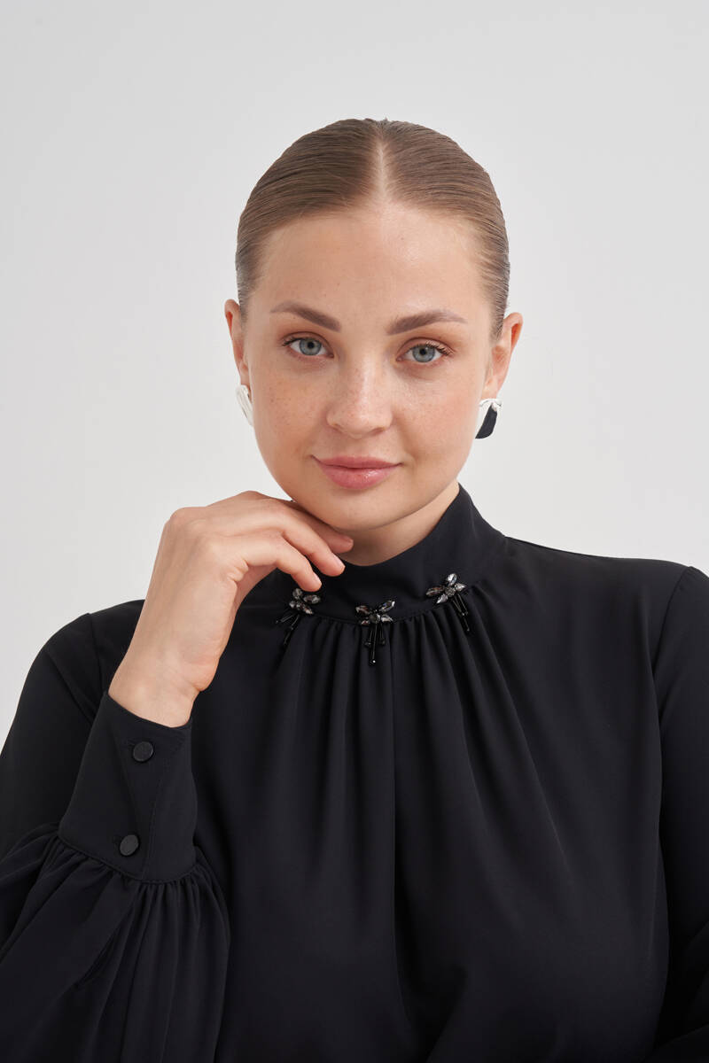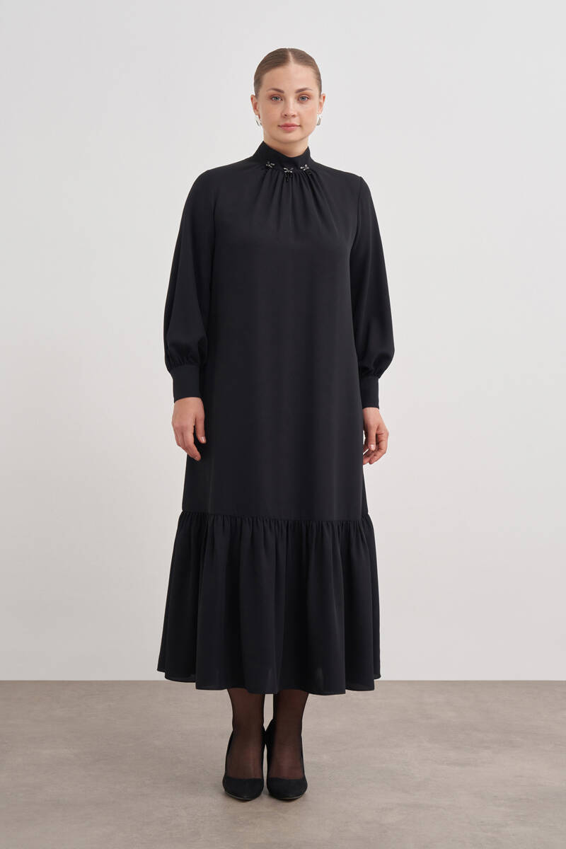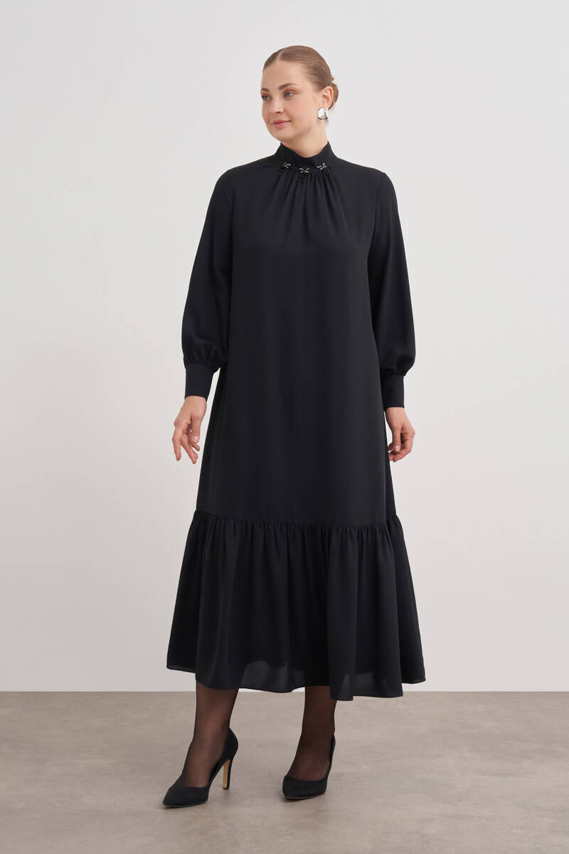 Siyah Vual Astarlı Cotton Brode Elbise