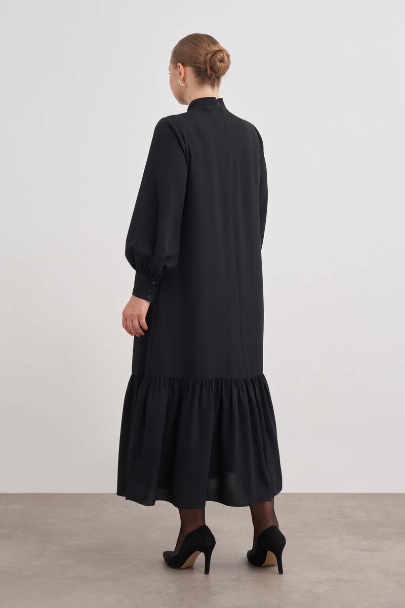 Lacivert Seyyar Çiçek Detaylı Varak Dokuma Elbise
