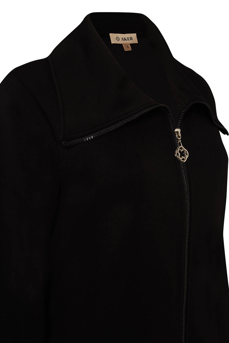 Siyah Kendinden Çizgili Kumaş Örme Hırka