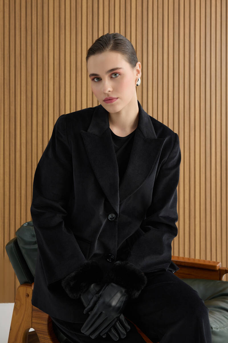 Siyah Fitilli Kadife Ceket