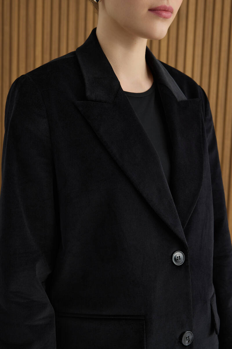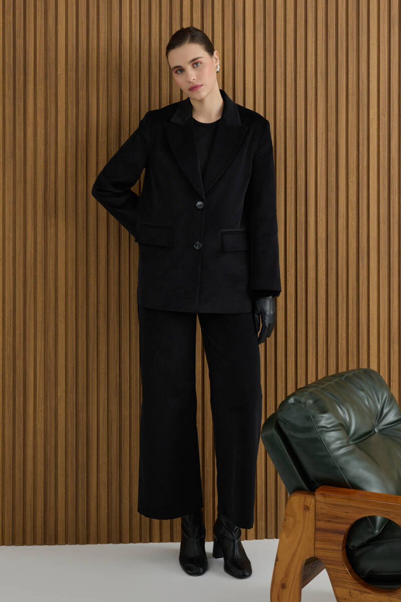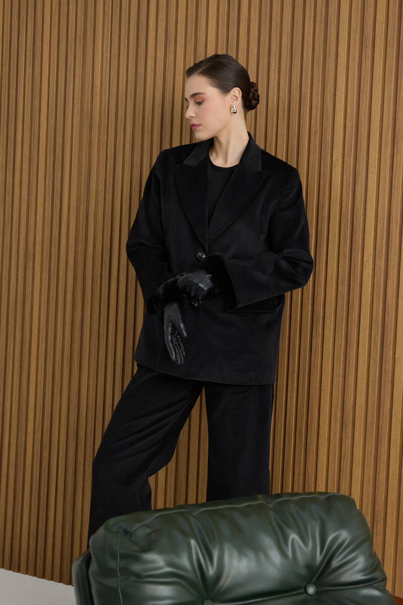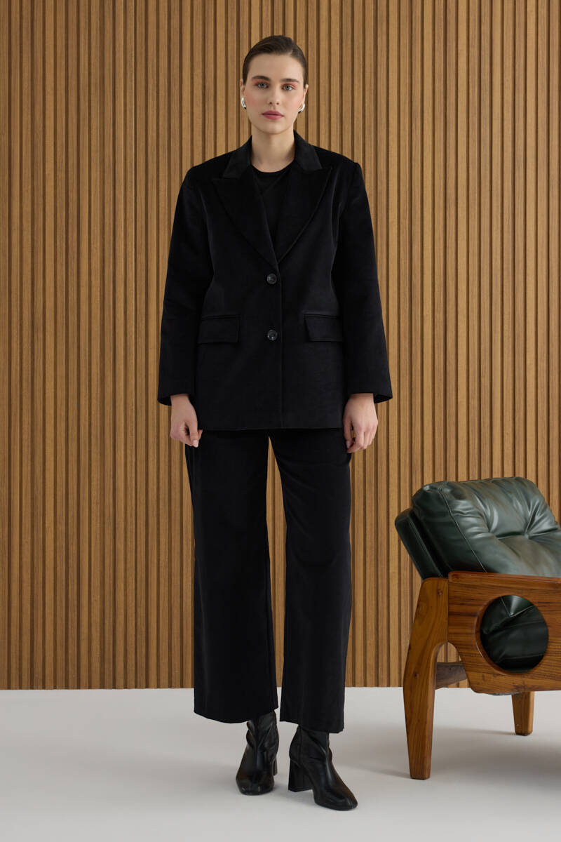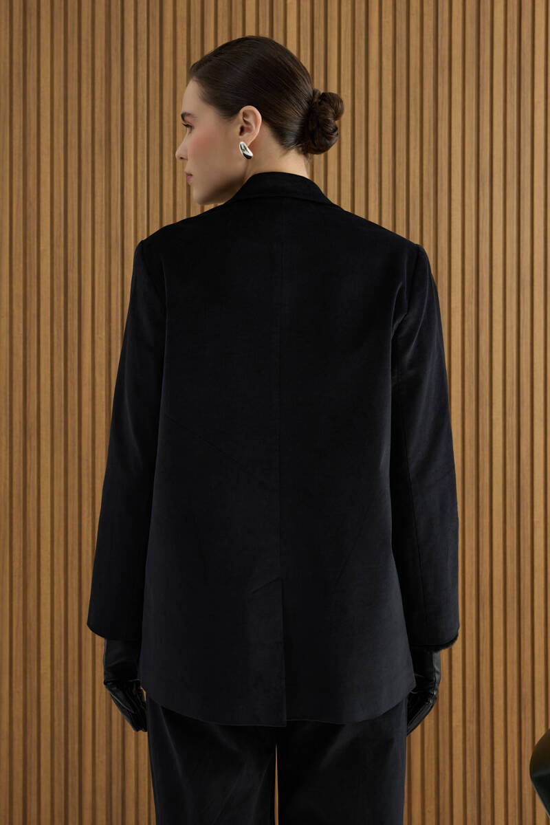 Siyah Taş Yapıştırmalı Dokuma Klasik Ceket