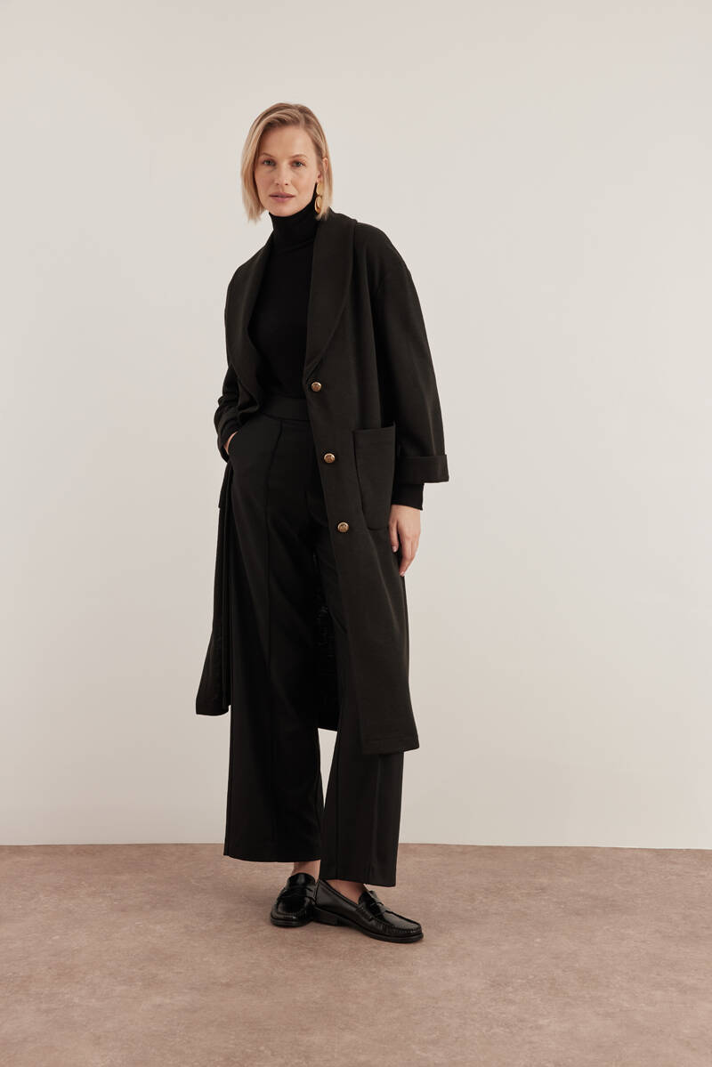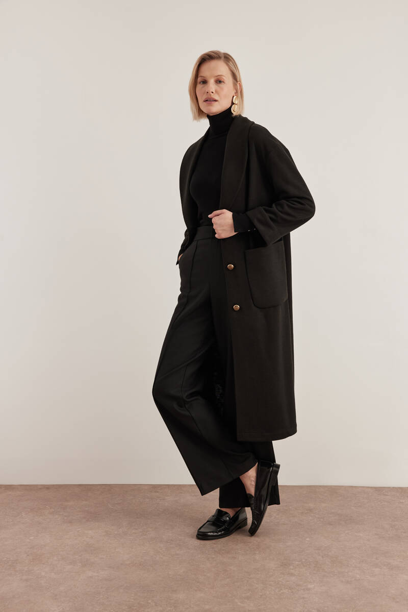 Siyah Önden Düğmeli Yakası Geri Dönüşlü Örme Hırka