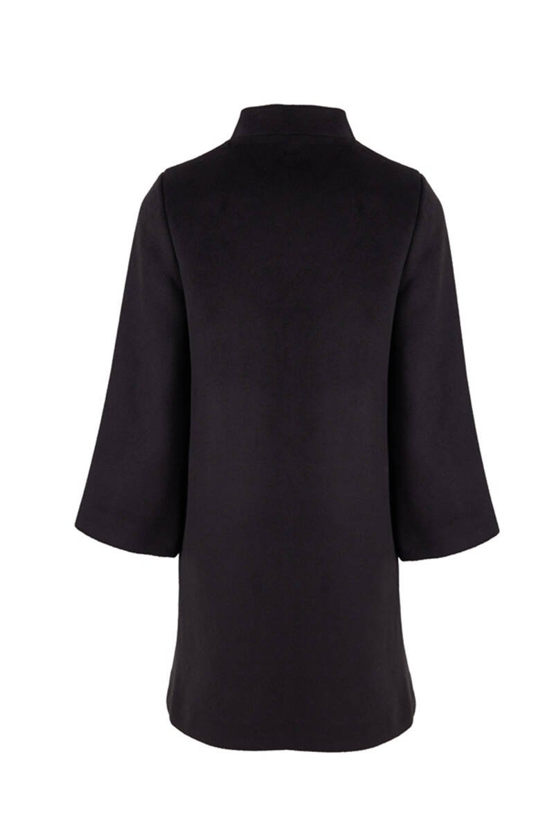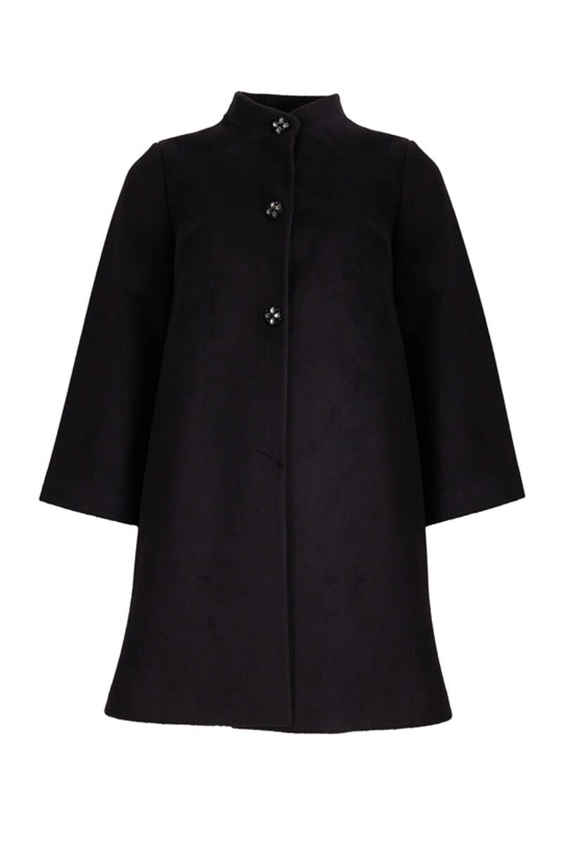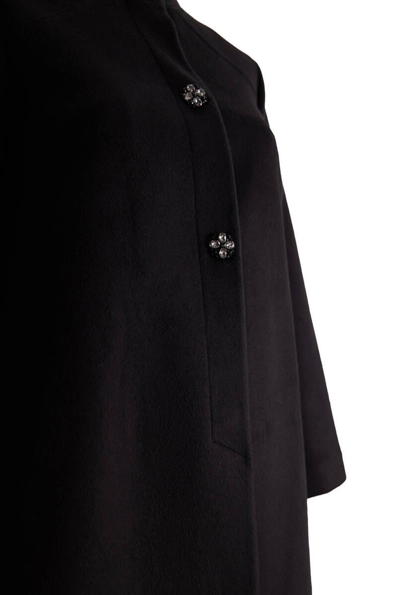 Siyah Hakim Yaka İşleme Detaylı Kaşe Kaban