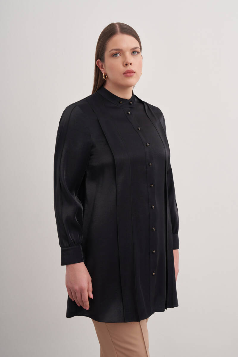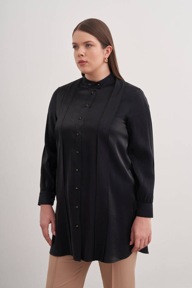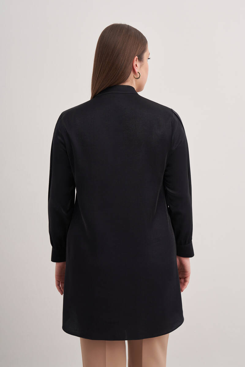 Siyah Yakası Fermuarlı Keten Tencel Tunik