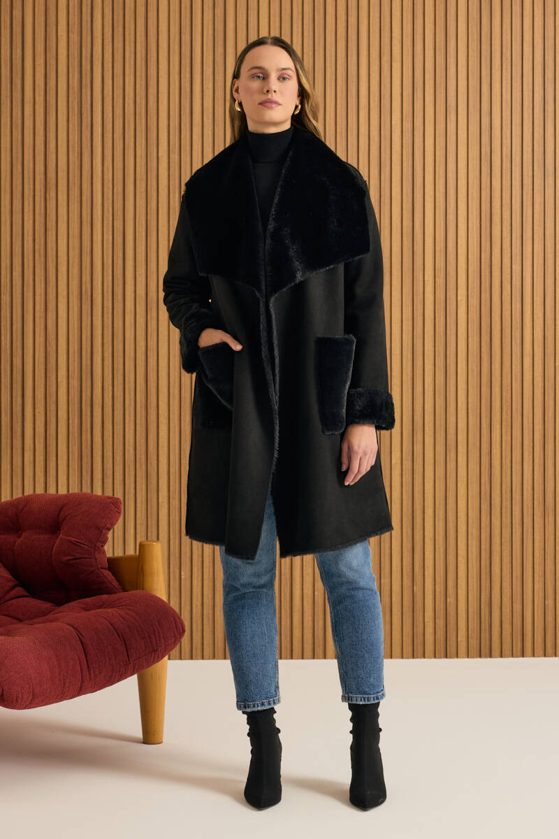 Siyah Fermuarlı Seyyar Kuşaklı Kapitone Mont