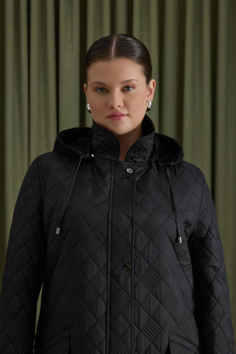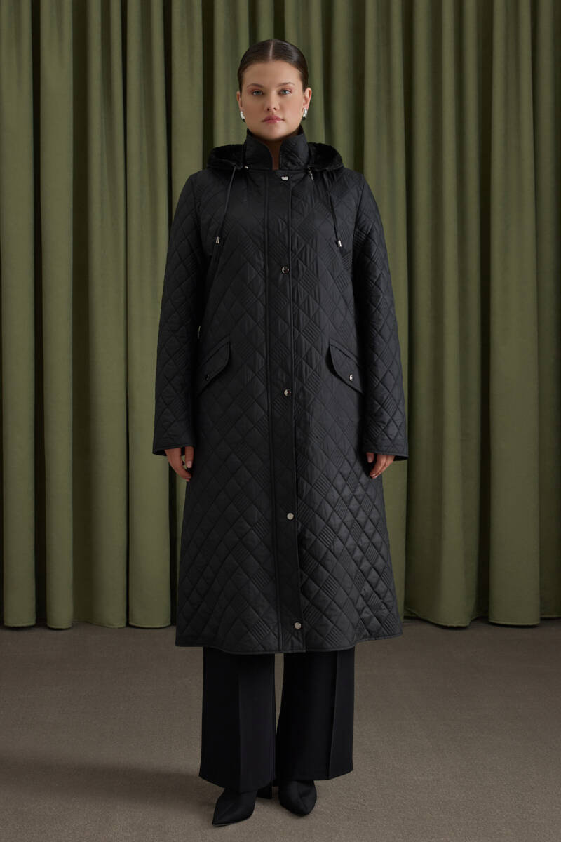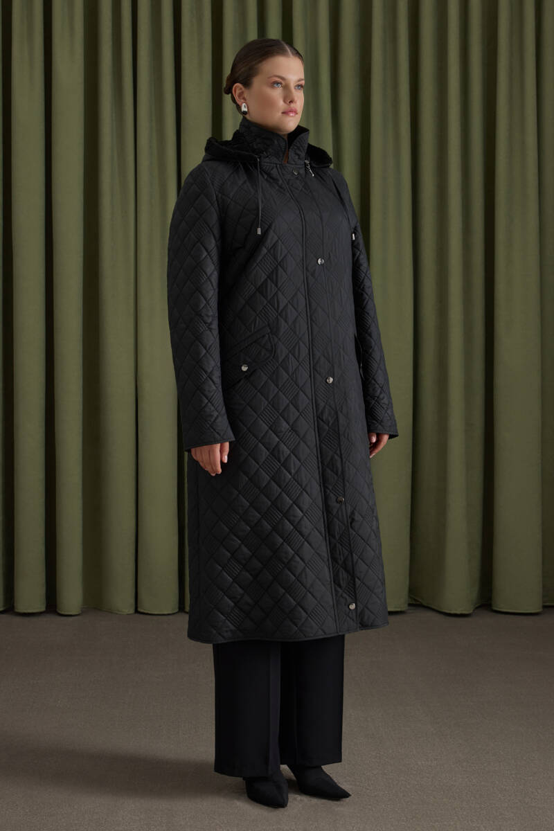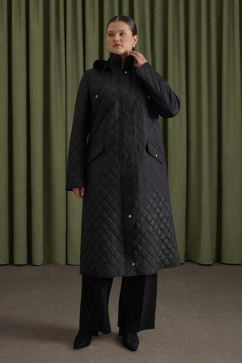 Siyah Seyyar Kapüşonlu Kapitone Mont