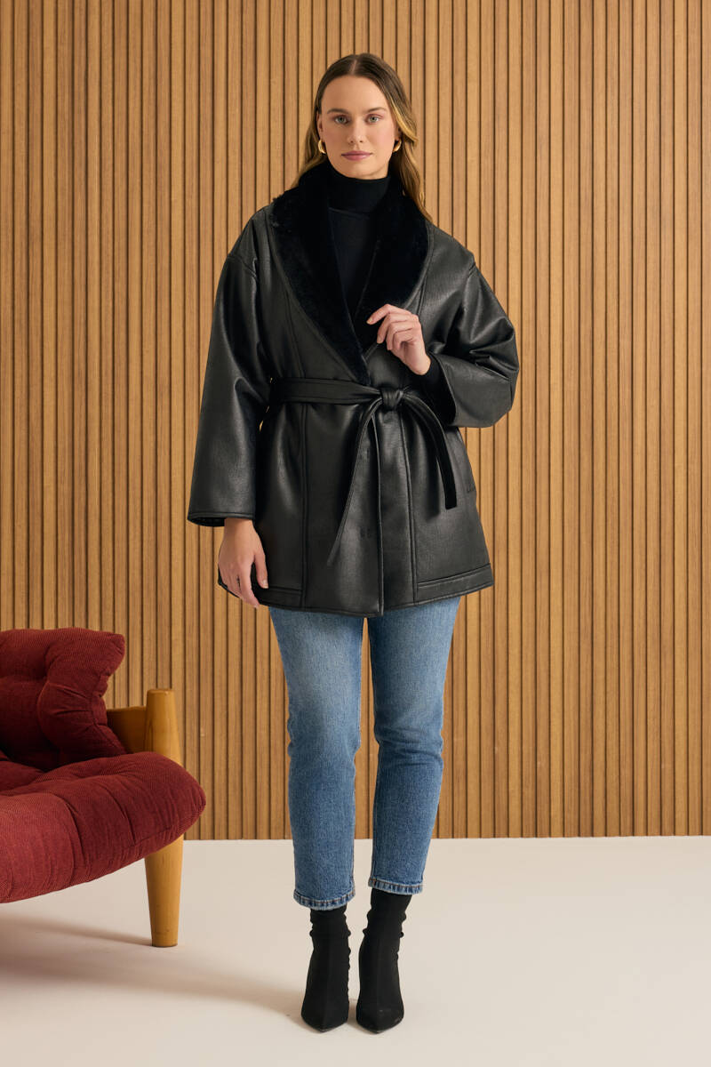 Siyah Kup Detaylı Kaban
