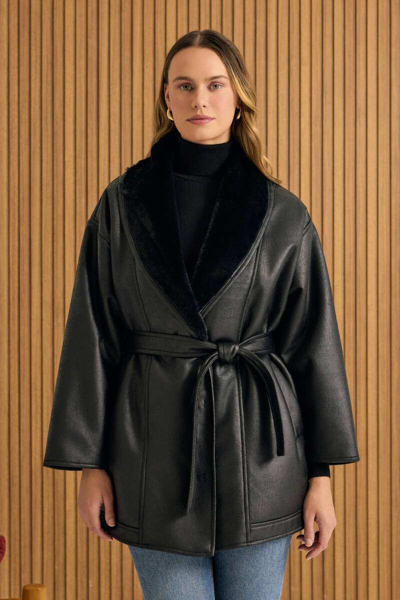 Camel İçi Kürk, Suni Deri Şal Yaka Kaban