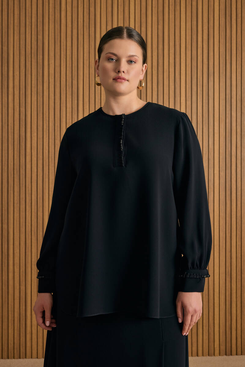 Pembe Yakası Pili ve İşleme Detaylı Dokuma Bluz