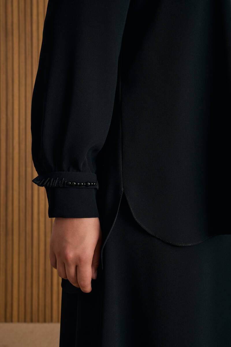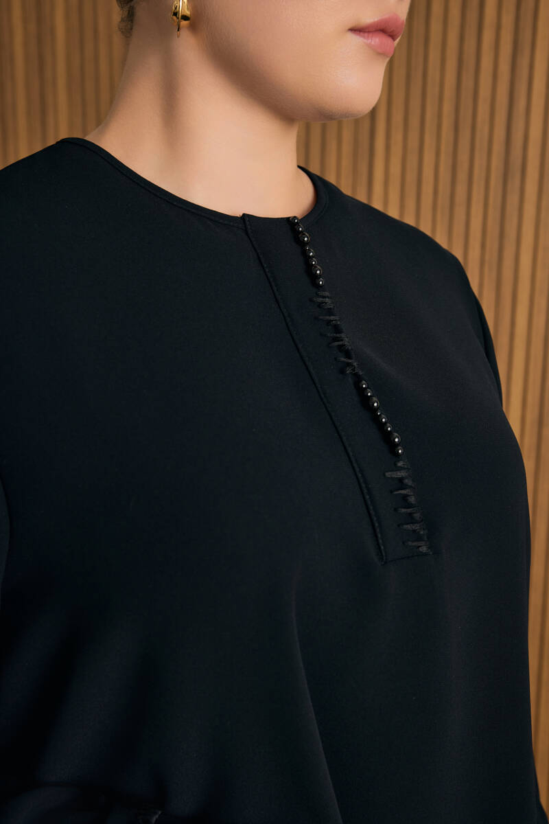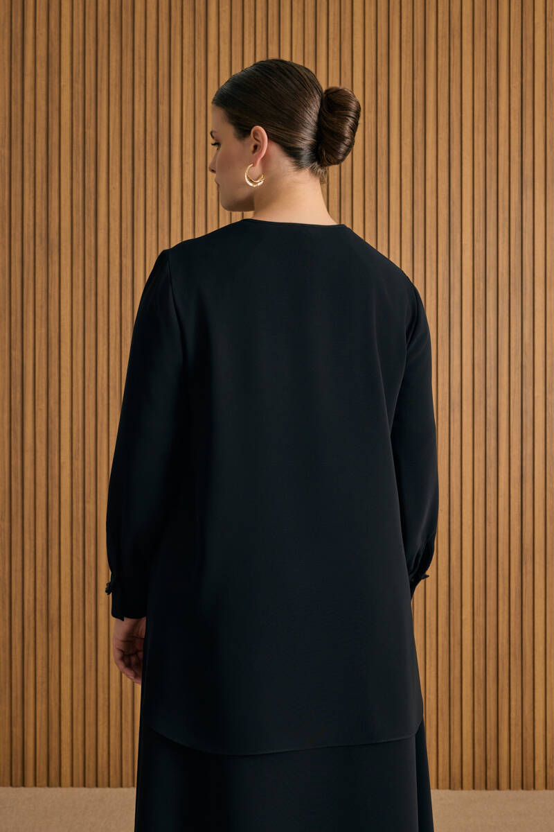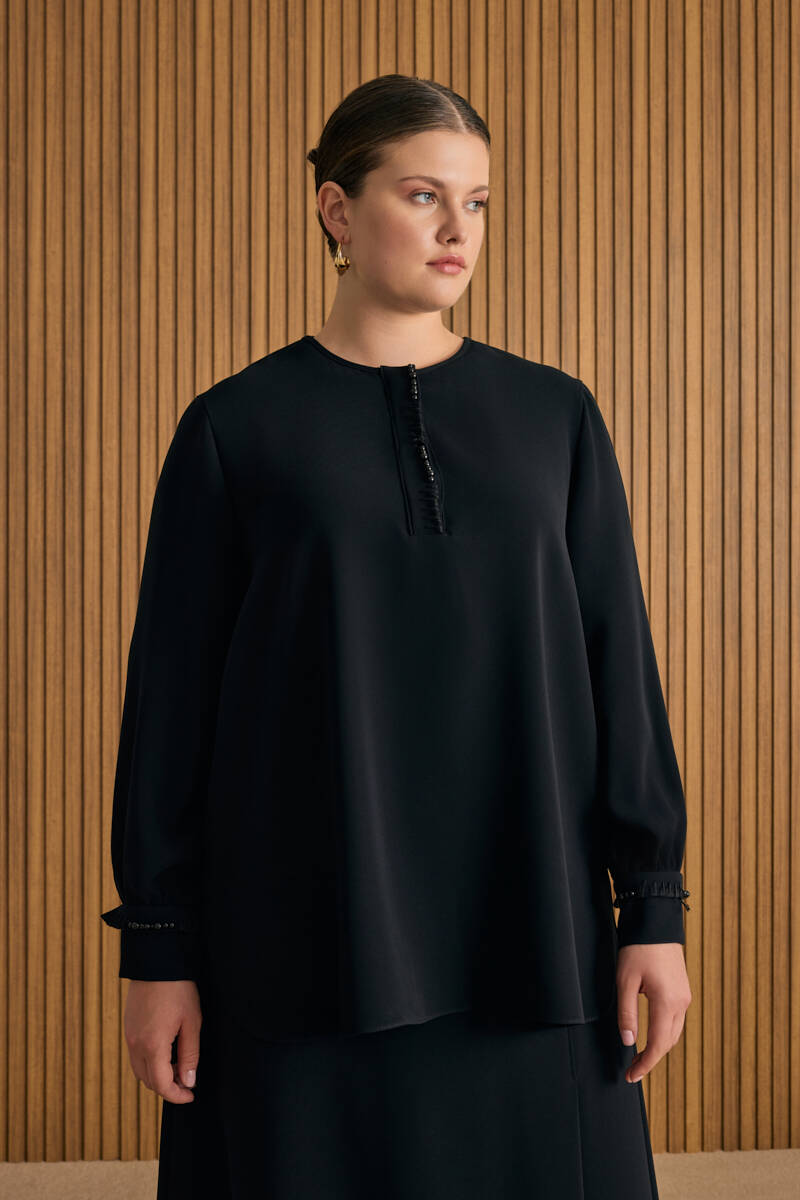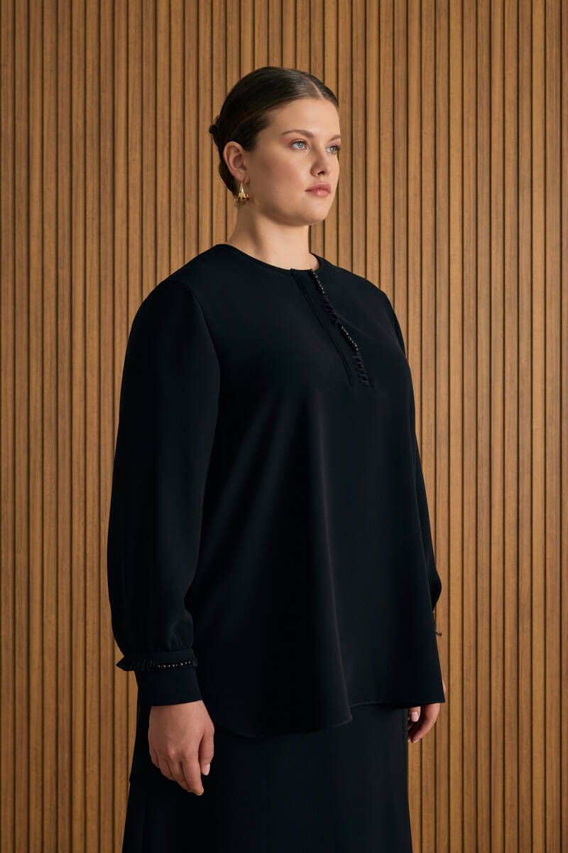 Siyah Tencel Keten Bluz