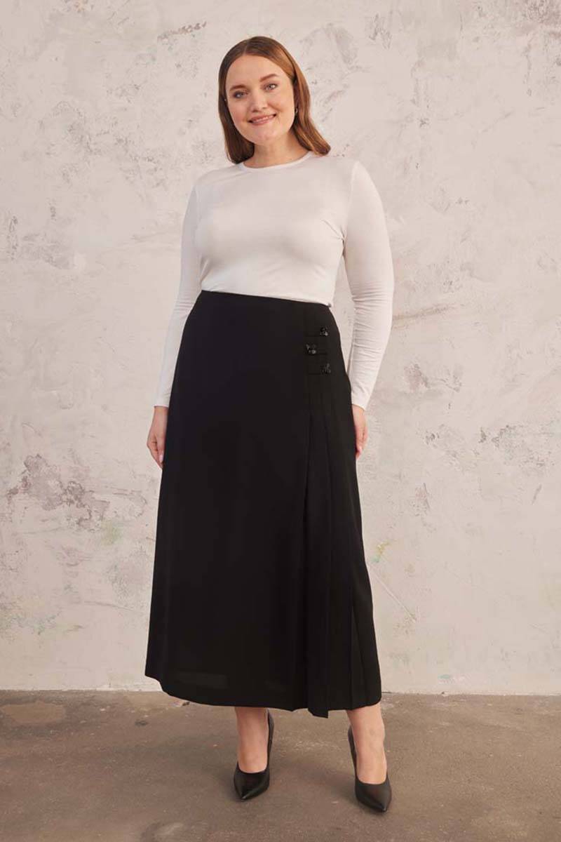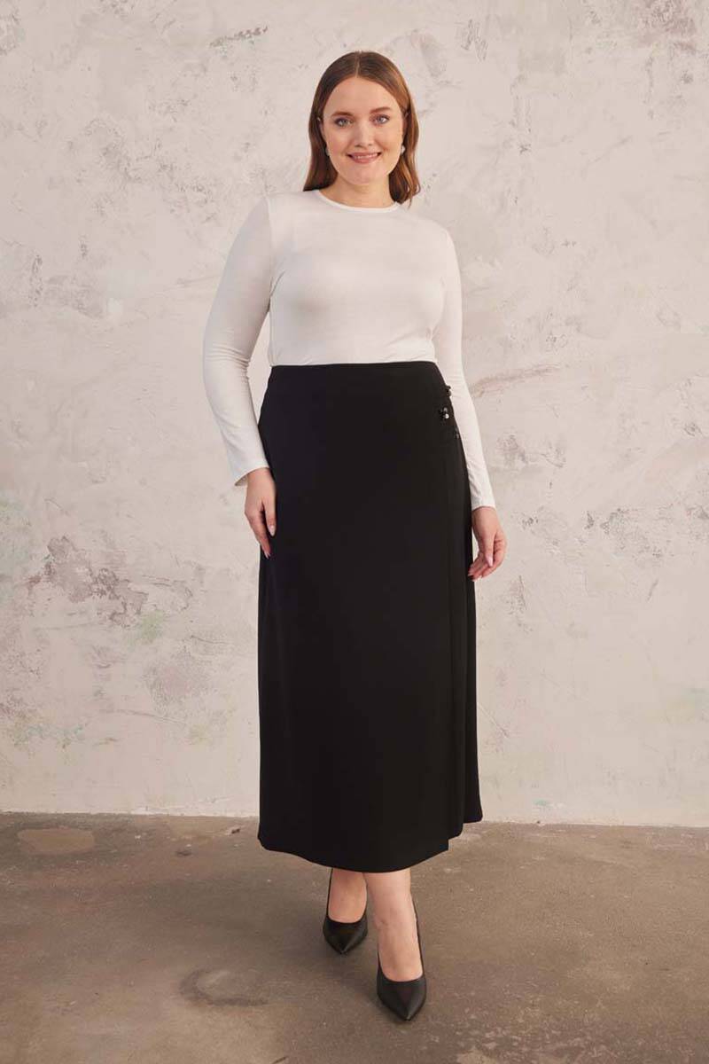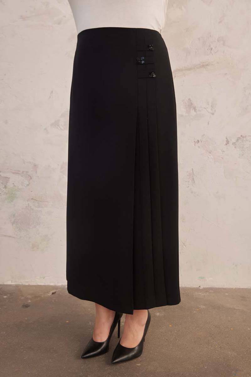 Siyah 1175111 DERİ ETEK DÜĞME AKSESUARLI