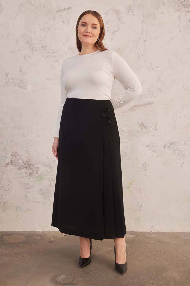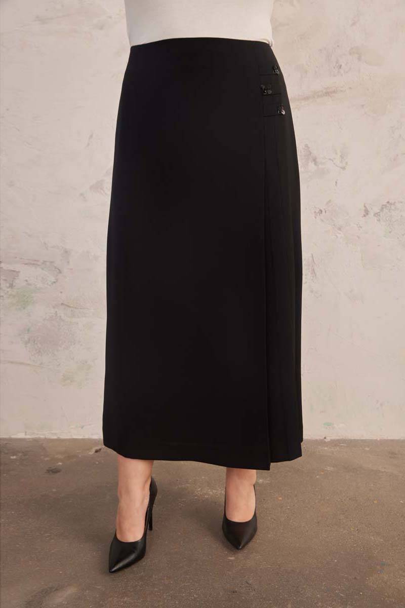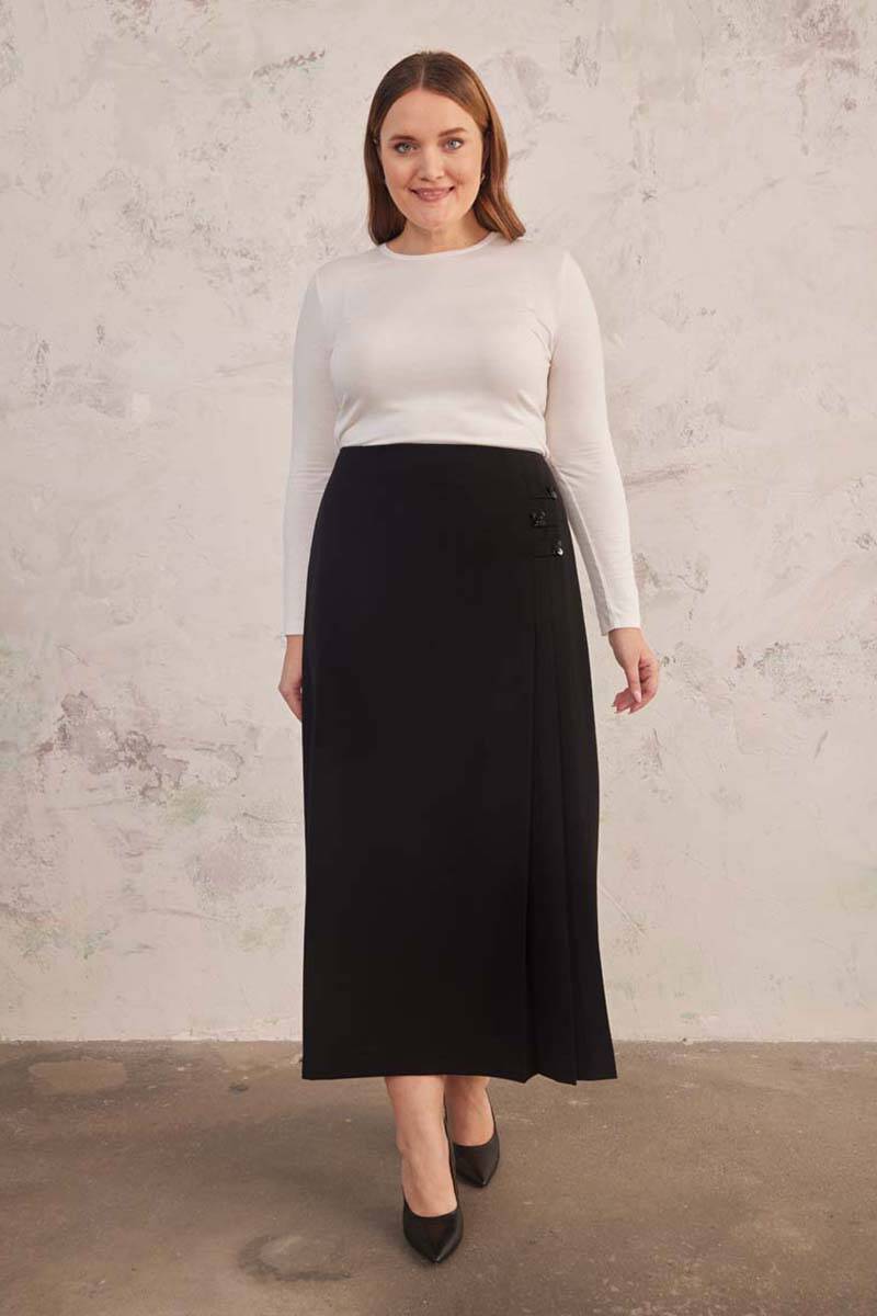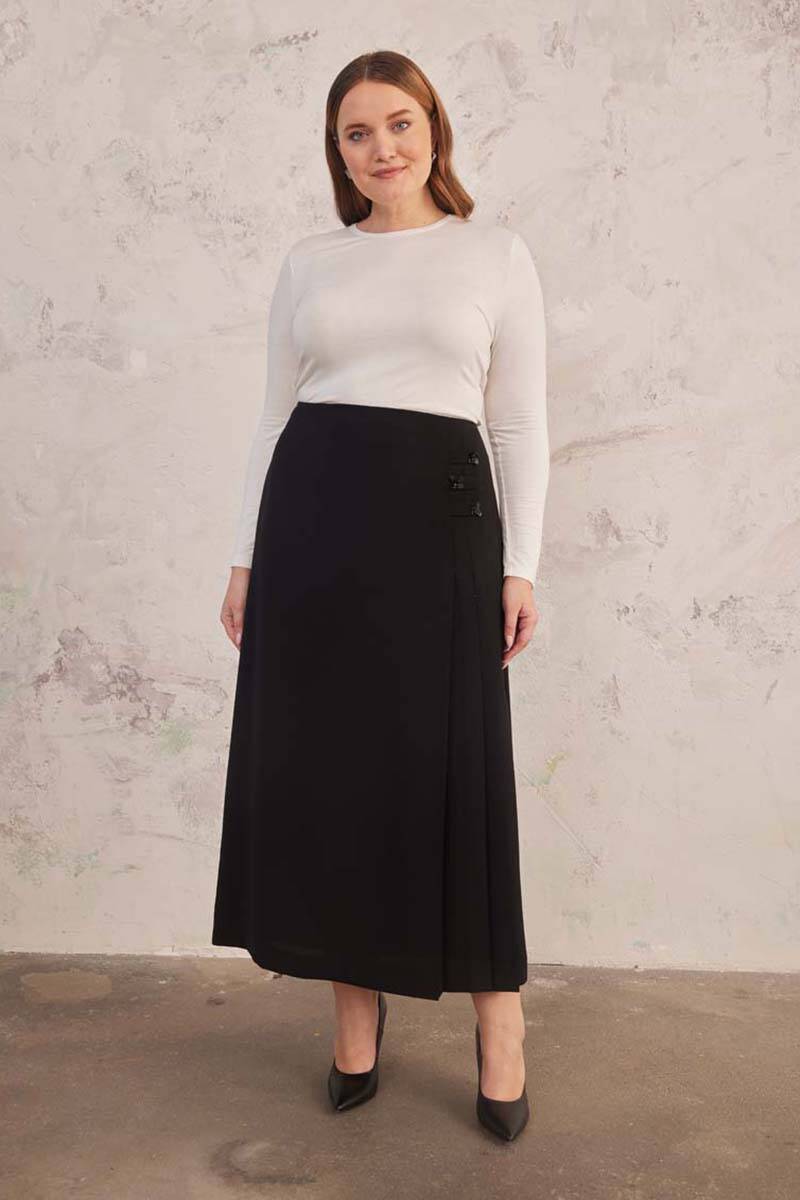 Siyah 1175111 DERİ ETEK DÜĞME AKSESUARLI