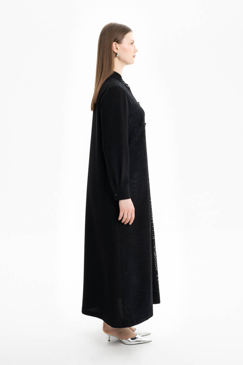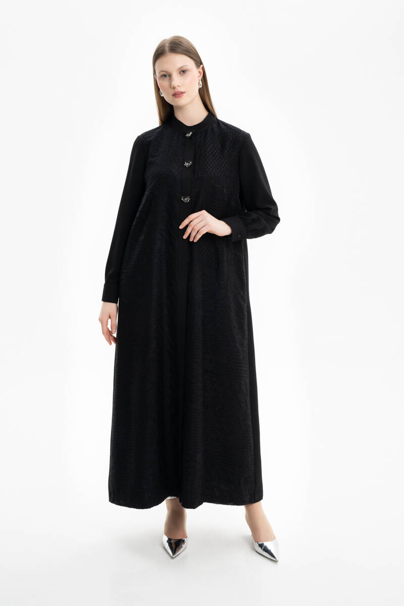 Siyah 7639111 Yaka İşlemeli Pardösü
