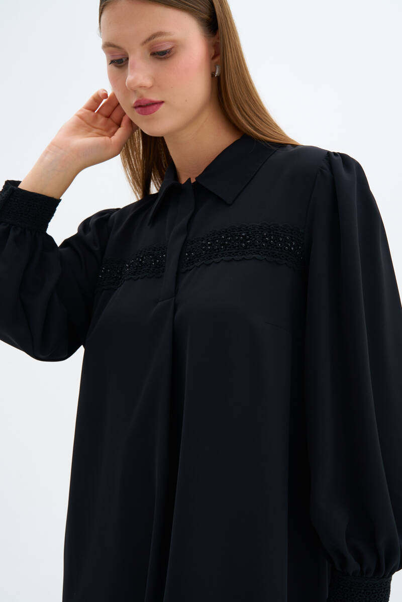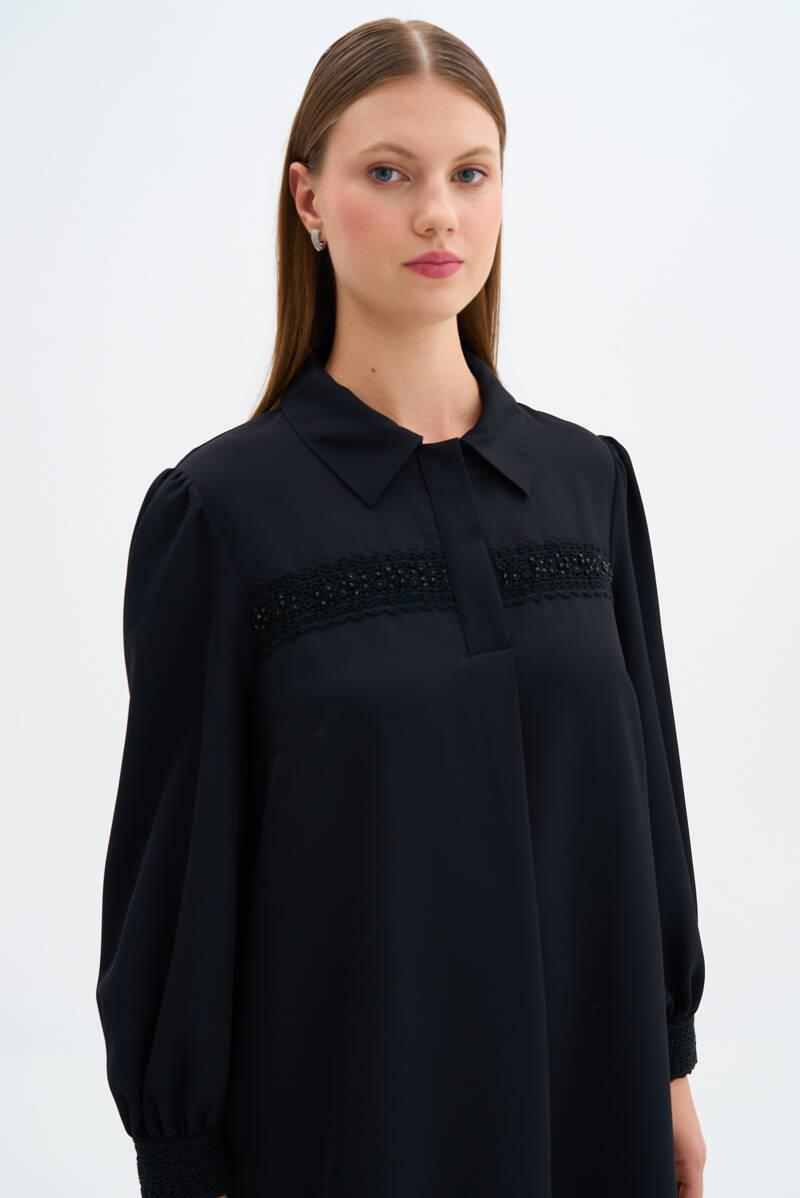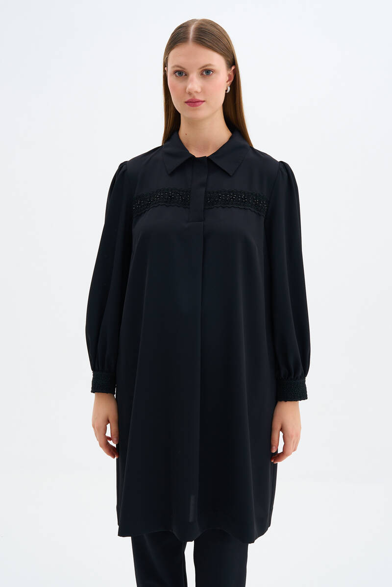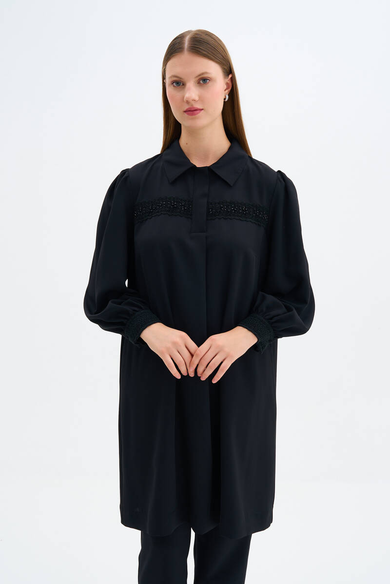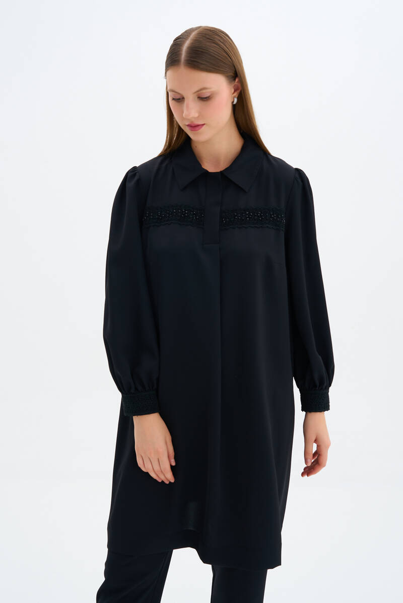 Siyah Dik Yaka Tunik