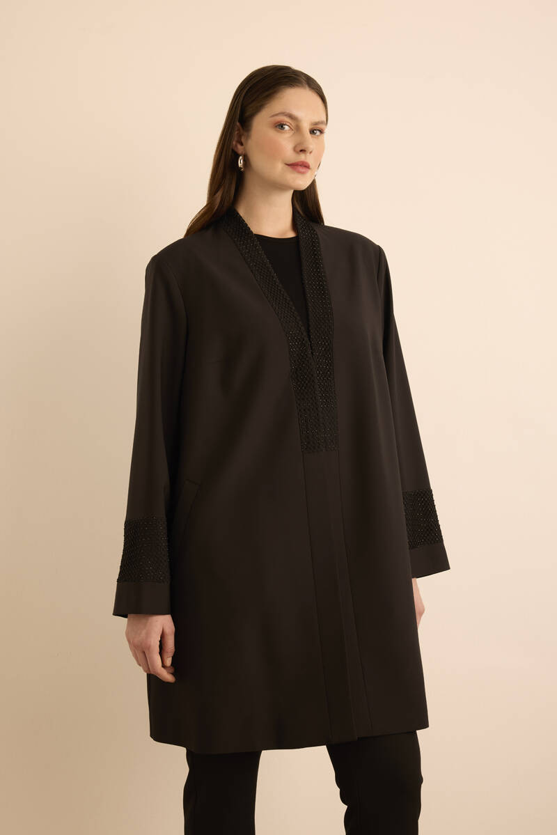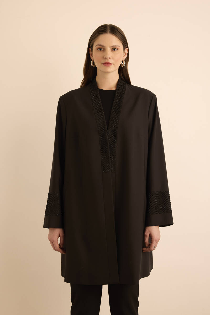 Siyah Çizgi Dokulu Tencel Rayon Kumaş Kap