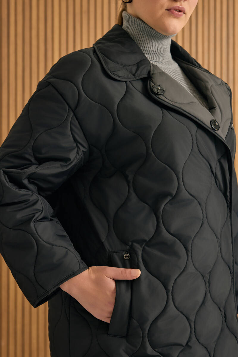 Siyah Seyyar Kapüşonlu Kapitone Mont