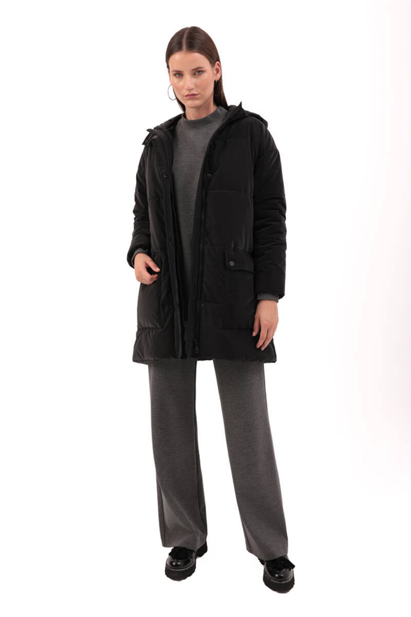 Siyah 5791111 Kapüşonlu Kapitone Mont