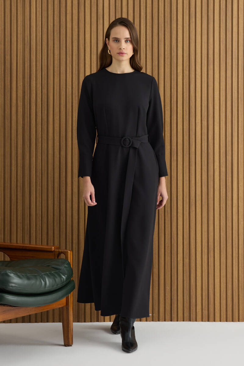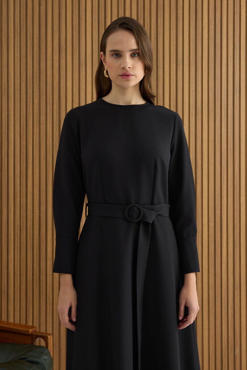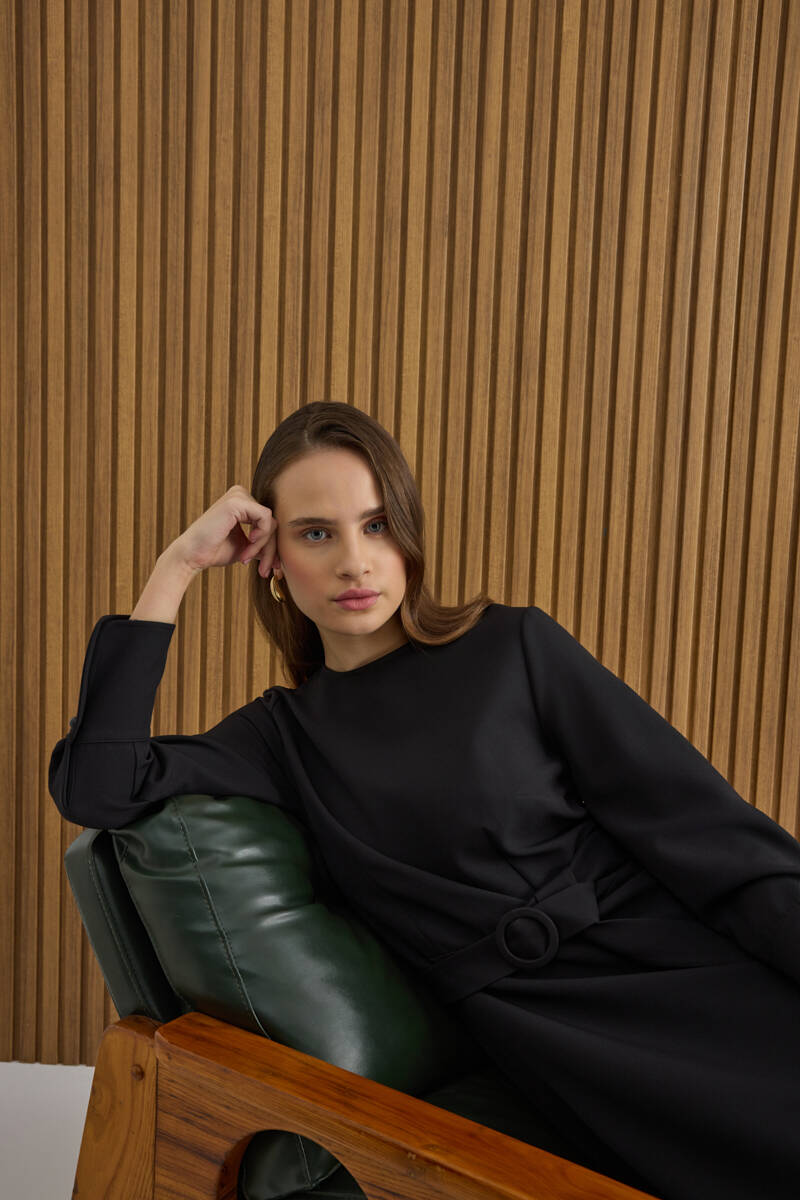 Siyah Doğal Dokulu Kumaş Gömlek Elbise