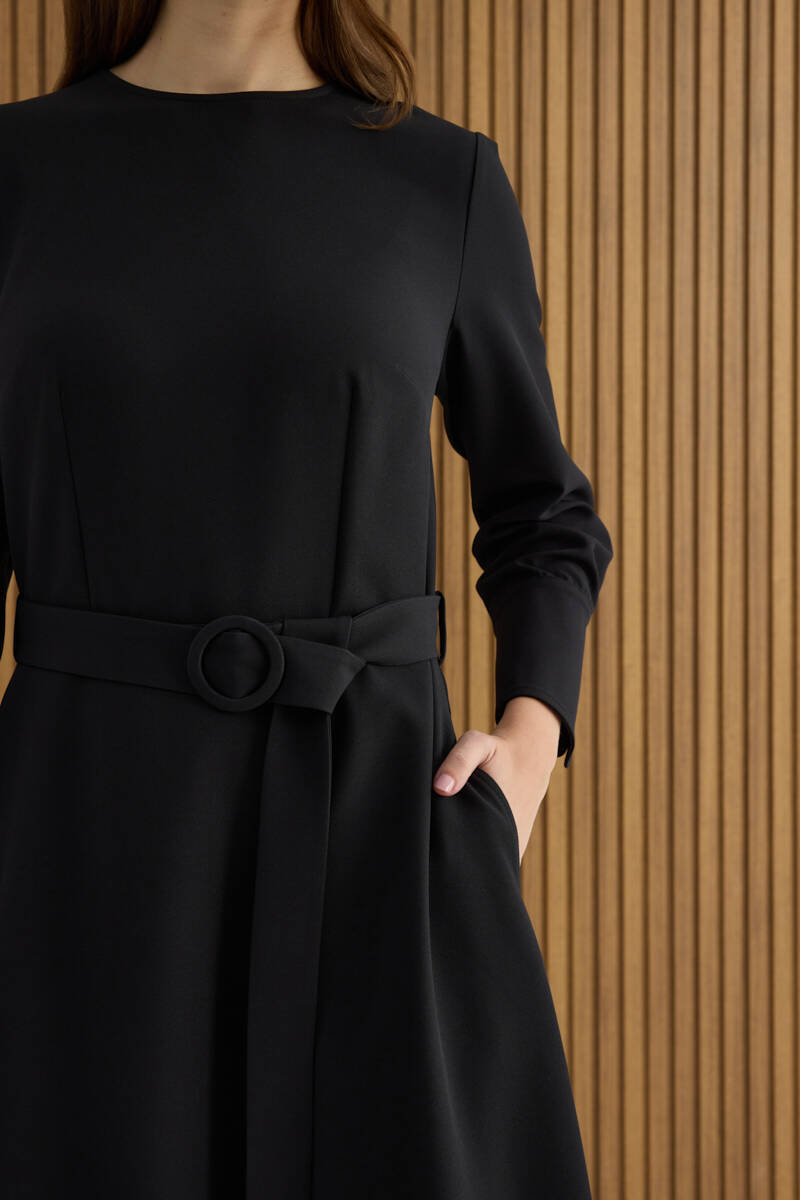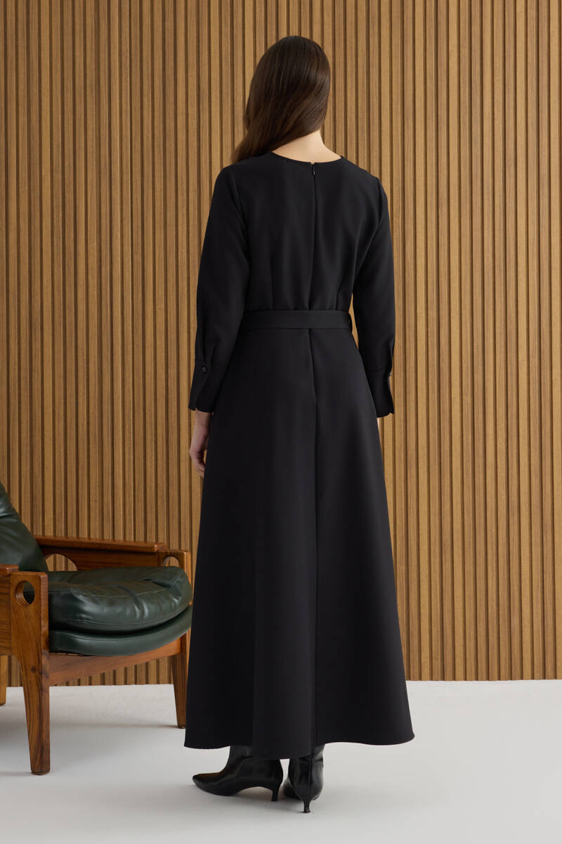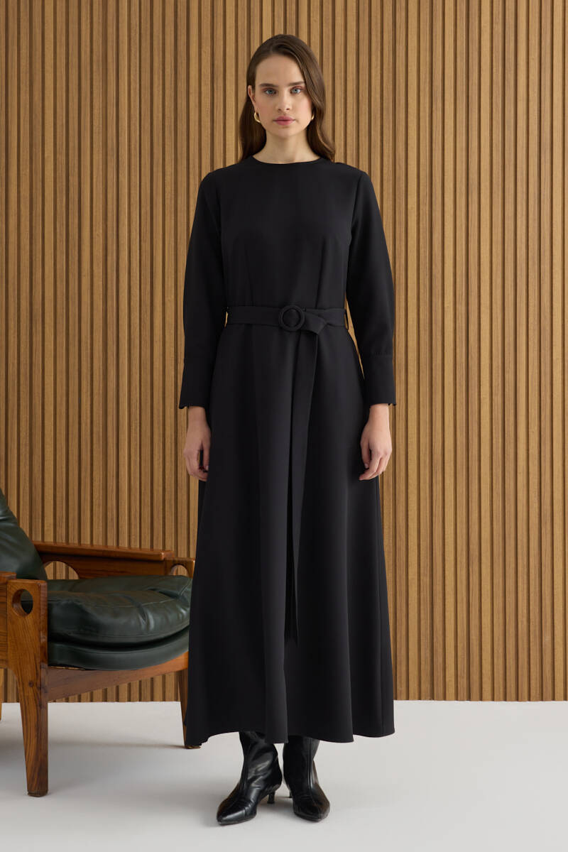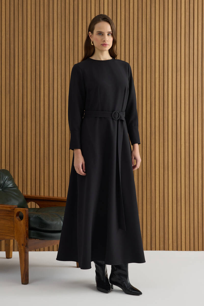 Siyah Doğal Dokulu Kumaş Gömlek Elbise