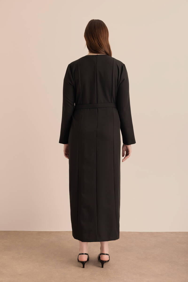 Siyah Kemerli Kuplu Elbise